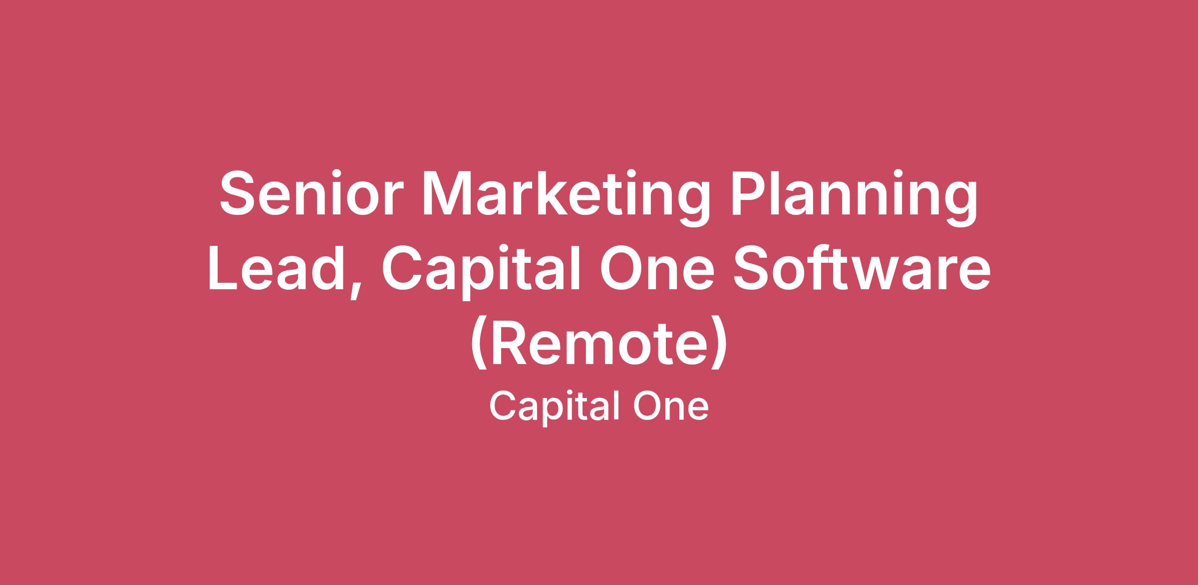 Senior Marketing Planning Lead, Capital One Software (Remote)Capital One Software is the enterprise B2B software business of Capital One, dedicated to helping organizations manage their data in the cloud with speed, agility, and efficiency. Born out of our own digital transformation, we commercialize the internal tools that powered our journey to becoming the first major U.S. bank to go "all-in" on the public cloud.Our flagship products, Slingshot (data cloud optimization) and Databolt (data security), are designed to solve the most complex data management and AI-readiness challenges. Core Job ResponsibilitiesCapital One Software is looking for a Marketing Planning Lead to drive the operational backbone of our marketing organization. This is a high-visibility role where you will be responsible for the "how" and "when" of our marketing strategy. You will orchestrate our annual and quarterly planning cycles, manage budgets, and streamline the workflows that allow our campaign managers and creative teams to do their best work.Architect and lead the marketing operating rhythm, including annual budget planning and quarterly campaign planning. Design and manage the central intake process for all marketing requests. Facilitate prioritization sessions to ensure resources are focused on the highest impact work.Act as the primary liaison for LRCC (Legal, Risk, Compliance, and Corporate Communications) approvals. You will optimize the review process to ensure campaign speed-to-market without compromising Capital One’s compliance standards.Agency & Vendor Management: Lead the relationship with external creative agencies and MarTech vendors. Partner with ESM (Enterprise Supplier Management) and BAR (Brand Agency Relations) to manage contracts, performance SLAs, and risk assessments.Maintain the master marketing calendar and provide executive-level reporting on campaign health, project status, and resource utilization.You will bridge the gap between Brand Creative, Product Marketing teams defining the vision, and the Risk/Legal teams ensuring we protect the brand.Basic Qualifications: Bachelor's Degree or military experienceAt least 5 years of experience in Marketing Operations, Project Management, or Marketing PlanningAt least 3 years of experience managing marketing budgets and financial forecastingPreferred Qualifications:Experience navigating complex legal or compliance review cycles in financial services or a similar industryDemonstrated ability to use project management tools (for example: Workfront or Jira) and CRM platforms (for example: Salesforce CSM)Experience streamlining internal creative and production workflowsAt this time, Capital One will not sponsor a new applicant for employment authorization for this positionThe minimum and maximum full-time annual salaries for this role are listed below, by location. Please note that this salary information is solely for candidates hired to perform work within one of these locations, and refers to the amount Capital One is willing to pay at the time of this posting. Salaries for part-time roles will be prorated based upon the agreed upon number of hours to be regularly worked.Remote (Regardless of Location): $161,500 - $184,300 for Sr. Manager, Marketing McLean, VA: $177,700 - $202,800 for Sr. Manager, Marketing New York, NY: $193,800 - $221,200 for Sr. Manager, Marketing Richmond, VA: $161,500 - $184,300 for Sr. Manager, Marketing San Francisco, CA: $193,800 - $221,200 for Sr. Manager, Marketing Candidates hired to work in other locations will be subject to the pay range associated with that location, and the actual annualized salary amount offered to any candidate at the time of hire will be reflected solely in the candidate’s offer letter.This role is also eligible to earn performance based incentive compensation, which may include cash bonus(es) and/or long term incentives (LTI). Incentives could be discretionary or non discretionary depending on the plan.Capital One offers a comprehensive, competitive, and inclusive set of health, financial and other benefits that support your total well-being. Learn more at the Capital One Careers website. Eligibility varies based on full or part-time status, exempt or non-exempt status, and management level.This role is expected to accept applications for a minimum of 5 business days.No agencies please. Capital One is an equal opportunity employer (EOE, including disability/vet) committed to non-discrimination in compliance with applicable federal, state, and local laws. Capital One promotes a drug-free workplace. Capital One will consider for employment qualified applicants with a criminal history in a manner consistent with the requirements of applicable laws regarding criminal background inquiries, including, to the extent applicable, Article 23-A of the New York Correction Law; San Francisco, California Police Code Article 49, Sections 4901-4920; New York City’s Fair Chance Act; Philadelphia’s Fair Criminal Records Screening Act; and other applicable federal, state, and local laws and regulations regarding criminal background inquiries.If you have visited our website in search of information on employment opportunities or to apply for a position, and you require an accommodation, please contact Capital One Recruiting at 1-800-304-9102 or via email at RecruitingAccommodation@capitalone.com. All information you provide will be kept confidential and will be used only to the extent required to provide needed reasonable accommodations.For technical support or questions about Capital One's recruiting process, please send an email to Careers@capitalone.comCapital One does not provide, endorse nor guarantee and is not liable for third-party products, services, educational tools or other information available through this site.Capital One Financial is made up of several different entities. Please note that any position posted in Canada is for Capital One Canada, any position posted in the United Kingdom 
