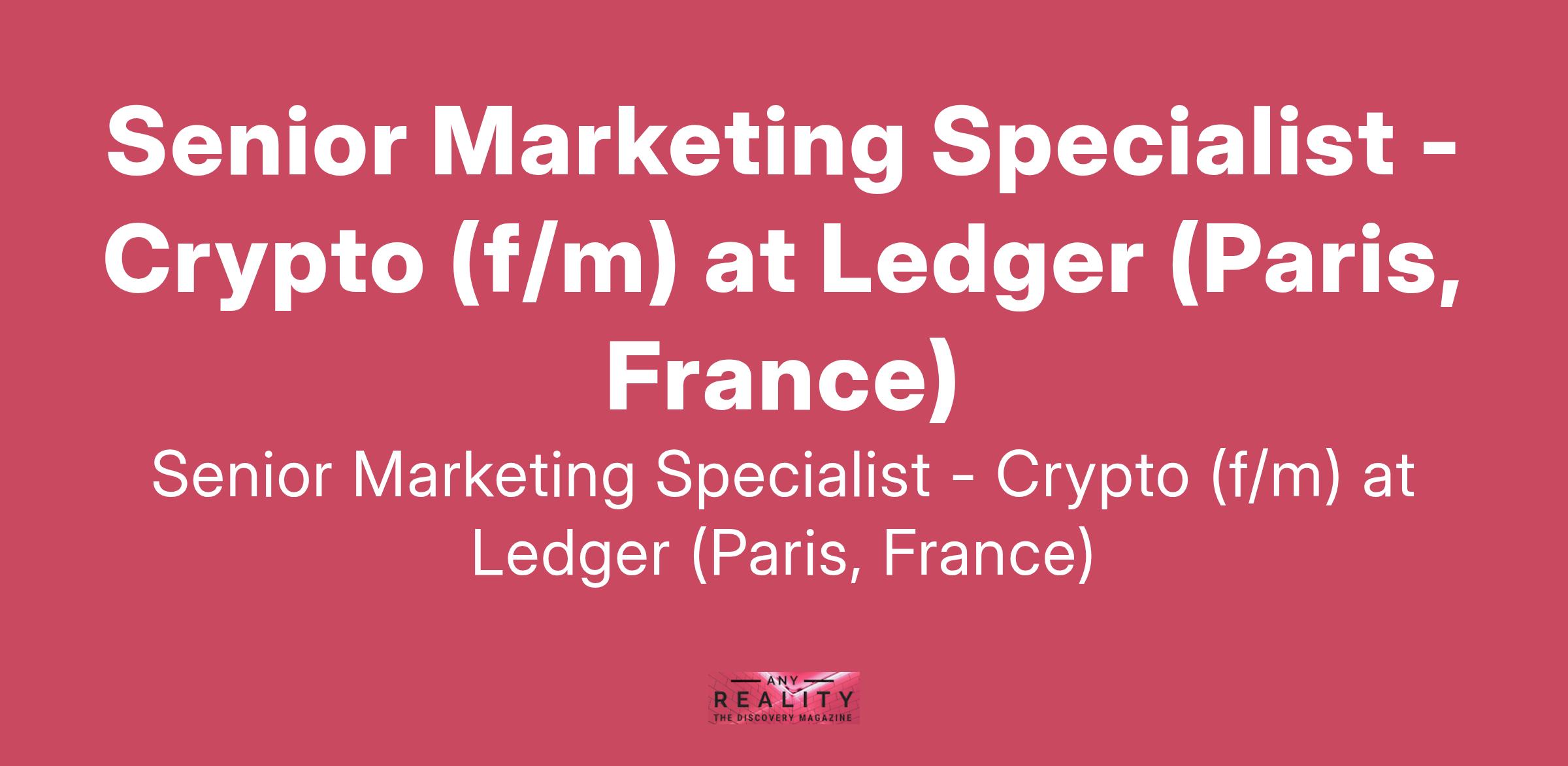 Senior Marketing Specialist - Crypto (f/m) at Ledger (Paris, France)
