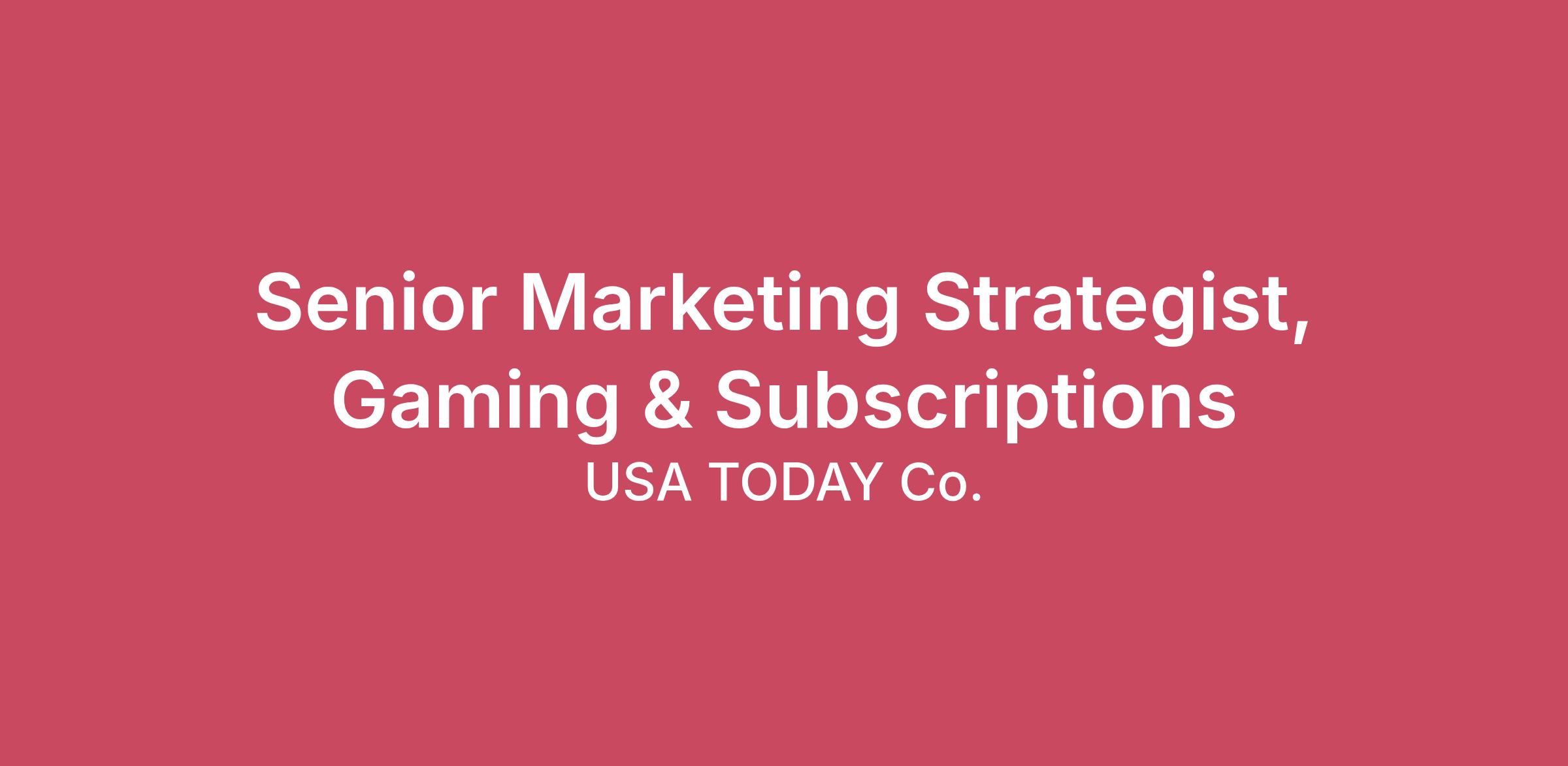 |Current USA TODAY Co. Employees- Please ensure you are using our abbreviated process on the internal Careers site by logging into Dayforce through MyApps| USA TODAY Co., Inc. is a diversified media company with expansive reach at the national and local level dedicated to empowering and enriching communities. We seek to inspire, inform, and connect audiences as a sustainable, growth focused media and digital marketing solutions company. Through our trusted brands, including the USA TODAY NETWORK, comprised of the national publication, USA TODAY, and local media organizations, including our network of local properties, in the United States, and Newsquest, a wholly-owned subsidiary operating in the United Kingdom, we provide essential journalism, local content, and digital experiences to audiences and businesses. We deliver high-quality, trusted content with a commitment to balanced, unbiased journalism, where and when consumers want to engage. Our digital marketing solutions brand, LocaliQ, supports small and medium-sized businesses with innovative digital marketing products and solutions. USA TODAY Co. open roles are featured on various external job boards. When applying to a position at USA TODAY Co., you should be completing an application on USA TODAY Co. Careers via Dayforce. Job postings directing you to complete an application on other external sites may not be valid. To connect with us, visit www.usatodayco.comUSA TODAY Co. Is looking for a Senior Marketing Strategist, Gaming & Subscriptions to own the end-to-end subscription growth model for PLAY—covering pricing and packaging, paywall and offer decisioning, registration to subscription conversion, onboarding, engagement/upsell, and churn mitigation. You’ll partner tightly with the PLAY business unit to deliver profitable subscriber growth, higher ARPU, and durable retention through experimentation and AI-enabled lifecycle programs. USA TODAY PLAY is our casual entertainment destination that brings together crosswords, puzzles, horoscopes, comics, quizzes, and more. PLAY builds on a strong existing foundation from legacy Crosswords and is designed to significantly expand its share of the USA TODAY Network audience over the next several years. The long-term vision is for PLAY to become a major revenue driver through a combination of subscriptions, stacked bundles, and sponsorship opportunities. What you’ll do Own the PLAY subscription growth model Define the value proposition and pricing/packaging for PLAY in partnership with key leaders in Consumer and PLAY Build and iterate the known-to-paid subscription funnel, creating journeys that drive habit and, ultimately, purchase intent Operate a rigorous experimentation program Stand up structured price/term tests for acquisition, stop‑save, and winback Maintain an always-on testing‑ backlog (paywall friction, day passes vs. subscription constructs, landing pages, overlays, lifecycle) and publish read‑outs; scale winners into playbooks. Launch and scale lifecycle programs Design and optimize full lifecycle journeys for PLAY, including lead acquisition, nurture, onboarding, engagement, upsell, and winback journeys Partner with Product to optimize PLAY checkout, stacked checkout experiences including PLAY, and PLAY account management experiences Define targeting and suppression logic with the CDP for real-time, segment-level decisioning and experiences across web/app/email Reduce churn and improve save rates Deploy AI-assisted churn mitigation and dynamic stop save flows; align onsite intercepts with account management journeys and call center policies. Partner and govern Work within the PLAY–Consumer model, clarify strategy, approvals, and delivery calendars; communicate progress and performance. Success measures (primary KPIs) Subscriber growth (net adds) and conversion rate from known to paid ARPU lift from pricing, annualization, and stacked add‑ons Churn / save rate improvement Time to launch experiments and scale learnings to drive optimizations Penetration of PLAY within USA TODAY Network audience and product add-on rate contribution to portfolio revenue What you’ll bring 5+ years in subscription growth, lifecycle marketing, with gaming/entertainment experience Hands-on experience with paywall strategy, dynamic offers, and churn mitigation (stop save, winback) at scale Proven success in developing and scaling multi-channel lifecycle programs that deliver measurable improvements in subscriber base and LTV Proficiency with A/B testing and experimentation frameworks; able to translate results into roll‑out playbooks Demonstrated fluency with marketing technology ecosystems (e.g., Salesforce Marketing Cloud, Braze, CDP, CRM platforms) and personalization at scale Strong analytical judgment with the ability to independently assess metrics, identify patterns and tradeoffs, and convert quantitative signals into strategic direction and recommendations Strong cross-functional leadership; able to work within the PLAY–Consumer operating model and align Product, Data, Activation, and Creative on shared goals #LI-REMOTE #LI-NR2 The annualized base salary for this role will range between $100,000 and $120,000. Base compensation is reflective of many factors, including, but not limited to, the market in which one lives/works, individual education level, skills, certifications and experience. Note: variable compensation is not reflected in these figures and based on the role, may be applicable. USA TODAY Co., Inc. is a proud equal opportunity employer committed to building and maintaining a diverse workforce. As such, we will consider all qualified applicants for employment and do not discriminate in connection with employment decisions on the basis of an applicant or employee’s race, color, national origin, ethnicity, ancestry, citizenship status, sex, gender, gender identity, gender expression, religion, age, marital status, personal appearance (including height and weig