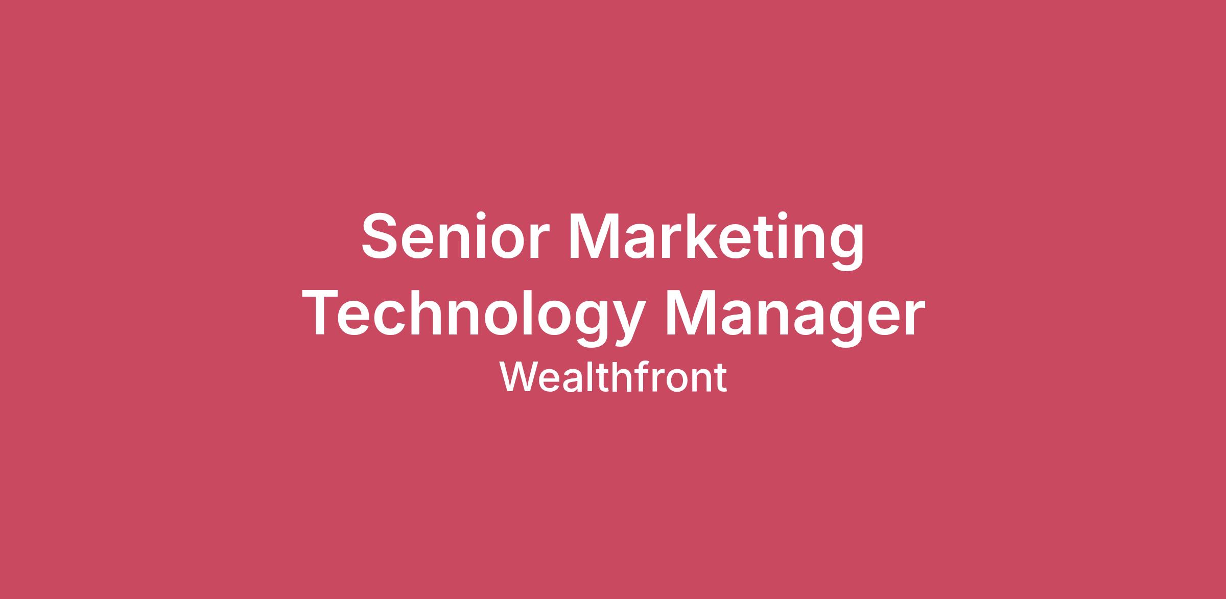 The marketing technology team at Wealthfront owns the tools and processes that enable how we communicate with our clients, and we are building out the team to support objectives across the marketing function. The team will help inform the lifecycle marketing roadmap in support of lead conversion, client growth, engagement, and retention. We are hiring a Senior Manager who is passionate about our technology and has a strong understanding of the marketing technology ecosystem and project management experience to help scale Wealthfront’s marketing efforts. As the Senior Manager on this team, you will be an owner of Wealthfront’s marketing tech stack - including the marketing automation platform, tools we use to communicate with clients, and processes by which we achieve marketing excellence. You will solve difficult challenges like - what tools and processes do we need to support marketers across different lines of businesses at scale? How do we increase the cadence of experimentation and learning? How do we leverage our marketing technology to provide personalized, curated experiences for our clients? How do we speed up the rate at which we learn about clients from our marketing efforts?\nResponsibilities: As a channel owner of Wealthfront’s marketing channels (email, push notifications, in-app messages, SMS, Landing Pages) and tools (1st party, Iterable), define the overall strategy, roadmap, and workflows to support goals across the organization. Be a business owner of our marketing automation tools, working across engineering, data science, product, and marketing partners to support a robust platform that elevates the delivery and communication of content to our clients. Responsible for executing marketing projects to completion – intake requests, making sure changes, assets, directions, and best practices are implemented. Communicate with stakeholders to set timelines and expectations and keep them informed. Advise partners on technical feasibility and best practices. Own the channel attribution and reporting of marketing programs, using data from our programs and experimentation tools to inform decisions. Together with cross-functional stakeholders, drive experimentation within messages and personalization of content. Keep track of innovations and lead conversations with third parties to build a best-in-class marketing technology platform. Ensure that all marketing processes are compliant with regulatory requirements (CCPA, GDPR etc.) Partner closely with Research, Data Science, Product, and Engineering teams on marketing strategies concerning product features, updates, and cross-functional projects Desired skills: 6+ years experience in marketing technology, marketing operations, data analysis/reporting, email marketing, and A/B testing. Experience working with marketing automation tools (e.g. SFMC, Iterable, Braze), project management tools (e.g. Jira). SQL skills preferred but not required. Experience in mapping, organizing, and utilizing data in marketing automation tools to build targeted segmentation and send personalized, real-time messages to users. Experience with landing page creation and optimization tools Experienced in HTML/CSS (for Email and Landing Pages) Strong stakeholder management and project management skills. Self-starter with high degree of motivation Structured thinker and strong problem-solving skills- there will be new and ambiguous challenges which will require an ability and interest in learning quickly Strong project management skills - this role requires a can-do attitude and the ability to manage multiple projects simultaneously BA/BS degree Bias for action to succeed in a fast growing environment Experienced in, or willingness to learn programming languages (Javascript, Python, etc) \n Estimated annual salary range: $148,000 - $162,710 USD plus Equity. Plus benefits include medical, vision, dental, 401K plan, generous time off, parental leave, wellness reimbursements, professional development, employee investing discount, and more!About WealthfrontHere at Wealthfront, our mission is to create a financial system that favors people, not institutions. We do this by leveraging technology to build powerful, low-cost, and easy-to-use financial products that help modern investors grow and manage their money.We started with the ambition to transform the investment advisory business. By automating strategies typically reserved for the wealthy, we unlocked access to high quality investment advice for a digitally-native generation that was underserved by traditional institutions. Since then, we've expanded to a full suite of products designed to help our clients turn their savings into long-term wealth, including:• A Cash Account that, through our partner banks, offers one of the highest annual percentage yields on uninvested cash in the industry, while providing instant and secure access to your money with no account fees and a full suite of checking features.• A zero-commission Stock Investing Account with 50+ handpicked collections that help DIY investors discover new companies and make smarter investing decisions.• Multiple automated investing portfolios designed to unlock tax savings through sophisticated strategies like fixed income, tax-loss harvesting, and direct indexing—which we offer at industry-leading low costs and accessible minimums.Our award-winning products have attracted over 1 million clients who trust us with more than $90 billion of their hard earned savings—and we're far from done. If you’re inspired to help us reshape the financial industry as we create our next chapter, let’s talk!For more information please visit www.wealthfront.com.We are an equal opportunity employer and value diversity at our company. We do not discriminate on the basis of race, religion, color, national origin, gender, sexual orientation, age, marital status, veteran status, or disability status.Please review our candidate privacy notice. Disclosur