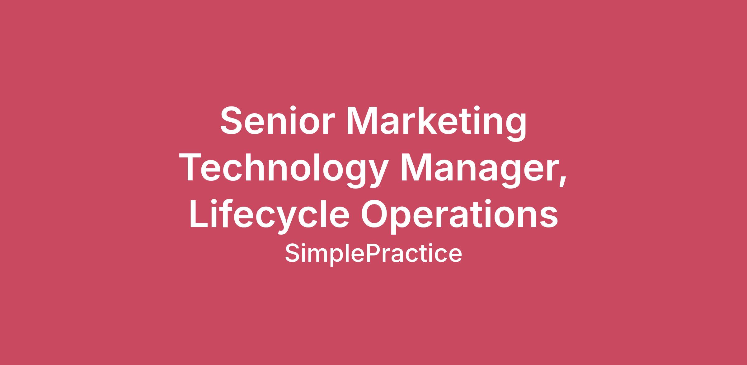 About Us At SimplePractice, we are improving access to quality care by equipping health and wellness clinicians with all the tools they need to thrive in private practice. More than 250,000 providers trust SimplePractice to build their business through our industry-leading software with powerful tools that simplify every part of practice management. From admin work to clinical care, our suite of innovative solutions work together to reduce administrative burden—empowering solo and small group practitioners to thrive alongside their clients. Recognized by MedTech Breakthrough as the Best Practice Management Solution Provider in 2024 and the Digital Health Awards in 2023, SimplePractice is proud to pave the future of health tech. The Role We’re seeking a high-impact Marketing Technology Manager to lead the technical architecture of our Lifecycle Marketing team. In this role, you will be the bridge between marketing strategy and technical execution, responsible for optimizing and scaling the data-driven engine that powers our customer journeys. You will manage a sophisticated stack to deliver targeted, relevant, and timely information that drives practitioner growth and maximizes lifetime value (LTV). Responsibilities Architect & Optimize: Own the technical roadmap for the Lifecycle Marketing stack, ensuring our tools (Iterable, Segment, Snowflake) are integrated and optimized to support complex, multi-channel customer journeys. Lead Technical Execution: Act as the primary technical lead for campaign operations, managing everything from data orchestration and API triggers to the implementation of modular email systems (Dyspatch). Data Stewardship: Partner with Data Engineering to maintain a robust data pipeline. You will ensure high data integrity within Segment and Snowflake to power accurate segmentation and real-time personalization. Scale Omnichannel Capabilities: Drive the expansion of our messaging capabilities, including the infrastructure for SMS (Twilio), push notifications, and advanced in-app experiences. Measurement & Analytics: Build and maintain the frameworks necessary to measure key growth metrics. You’ll leverage tools like Google Analytics, Mixpanel, and Rockerbox to translate technical performance into actionable growth insights. Cross-Functional Collaboration: Serve as the key liaison between Marketing, Product, and Engineering to align technical investments with business requirements and ensure a seamless customer experience. Innovation & AI: Identify and implement cutting-edge MarTech solutions, including AI-driven features within Iterable and Segment, to automate touchpoints and improve campaign efficiency. Desired Skills & Experience 8+ years of experience in Marketing Technology or Operations, with a deep understanding of how to build and scale lifecycle marketing ecosystems. Hands-on mastery of Iterable (or similar ESPs like Braze/Iterable), Segment (CDP), and Snowflake (Data Warehouse). You are comfortable with SQL and have a strong grasp of data schemas, identity resolution, and how data flows between disparate marketing systems. Highly proficient with digital analytics and attribution tools such as Google Analytics, Mixpanel, and Rockerbox. You have a "builder" mentality - you can take a complex business requirement and translate it into a scalable technical workflow. Excellent communicator who can explain technical concepts to non-technical stakeholders and influence roadmap prioritization. You have a rigorous approach to QA, deliverability monitoring, and technical troubleshooting to ensure zero-fail campaign execution. Base Compensation Range $112,000 - $140,000 annually Base salary is one component of total compensation. Employees may also be eligible for an annual bonus or commission. Some roles may also be eligible for overtime pay. The above represents the expected base compensation range for this job requisition. Ultimately, in determining your pay, we’ll consider many factors including, but not limited to, skills, experience, qualifications, geographic location, and other job-related factors. Benefits We offer a competitive benefits program including: Medical, dental, vision, life & disability insurance 401(k) plan with company match Flexible Time Off (FTO), wellbeing days, paid holidays, and summer Fridays Mental health resources Paid parental leave & Backup Care Tuition reimbursement Employee Resource Groups (ERGs) California Job Applicant Privacy Notice Thank you for your interest in opportunities at SimplePractice LLC (“SimplePractice” or “us” or “we” or “our”). Please note that when you submit your resume or application materials to us for employment purposes, you are subject to the SimplePractice California Job Applicant Privacy Notice. For more information about our privacy practices, please contact us at privacy@simplepractice.com.