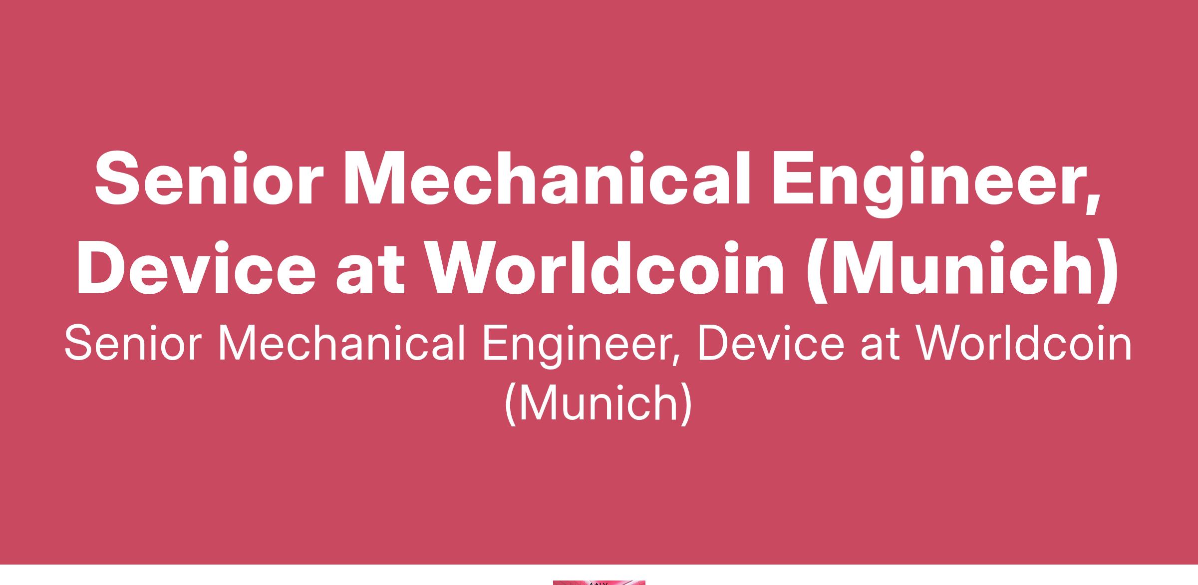 Senior Mechanical Engineer, Device at Worldcoin (Munich)