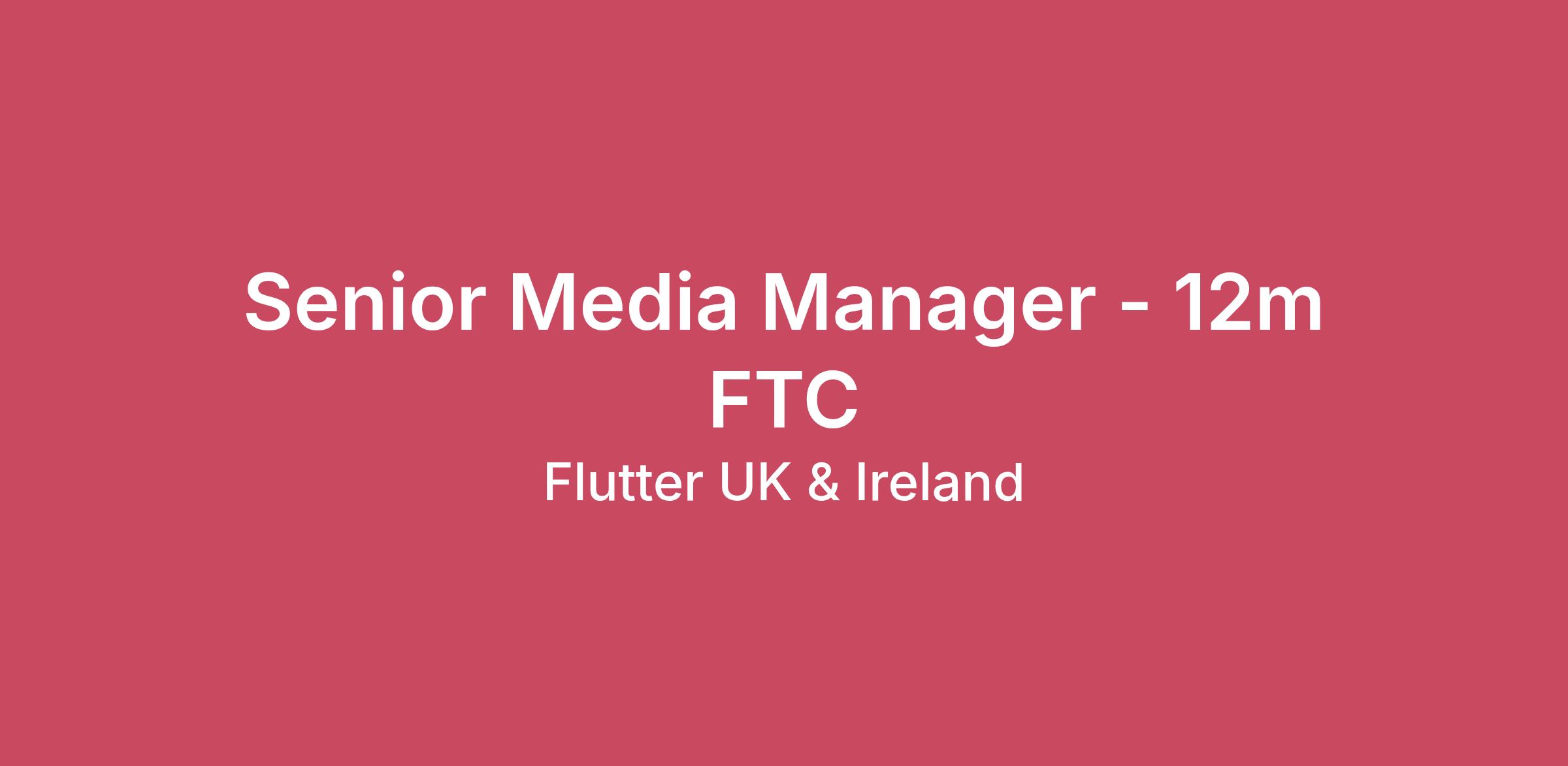 We’re looking for a Senior Media Manager to join our Media Team at Paddy Power part of Flutter UK & Ireland on a 12month Fixed-term contract.