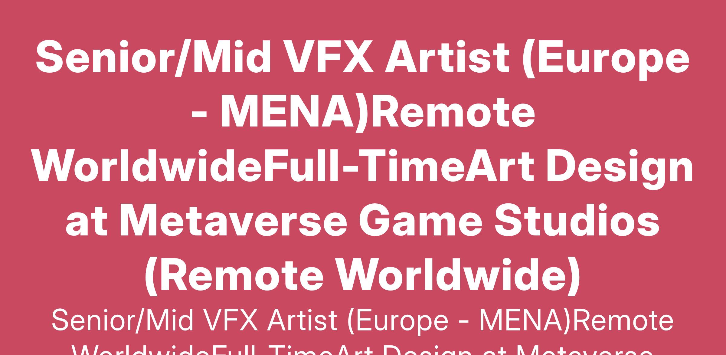 Senior/Mid VFX Artist (Europe - MENA)Remote WorldwideFull-TimeArt Design at Metaverse Game Studios (Remote Worldwide)