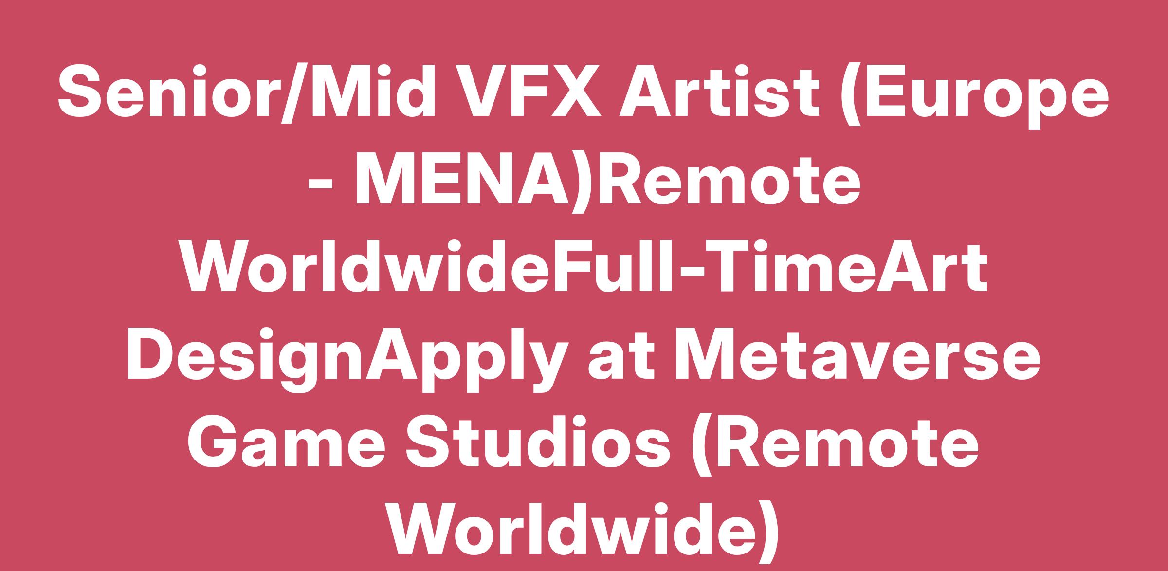 Senior/Mid VFX Artist (Europe - MENA)Remote WorldwideFull-TimeArt DesignApply at Metaverse Game Studios (Remote Worldwide)