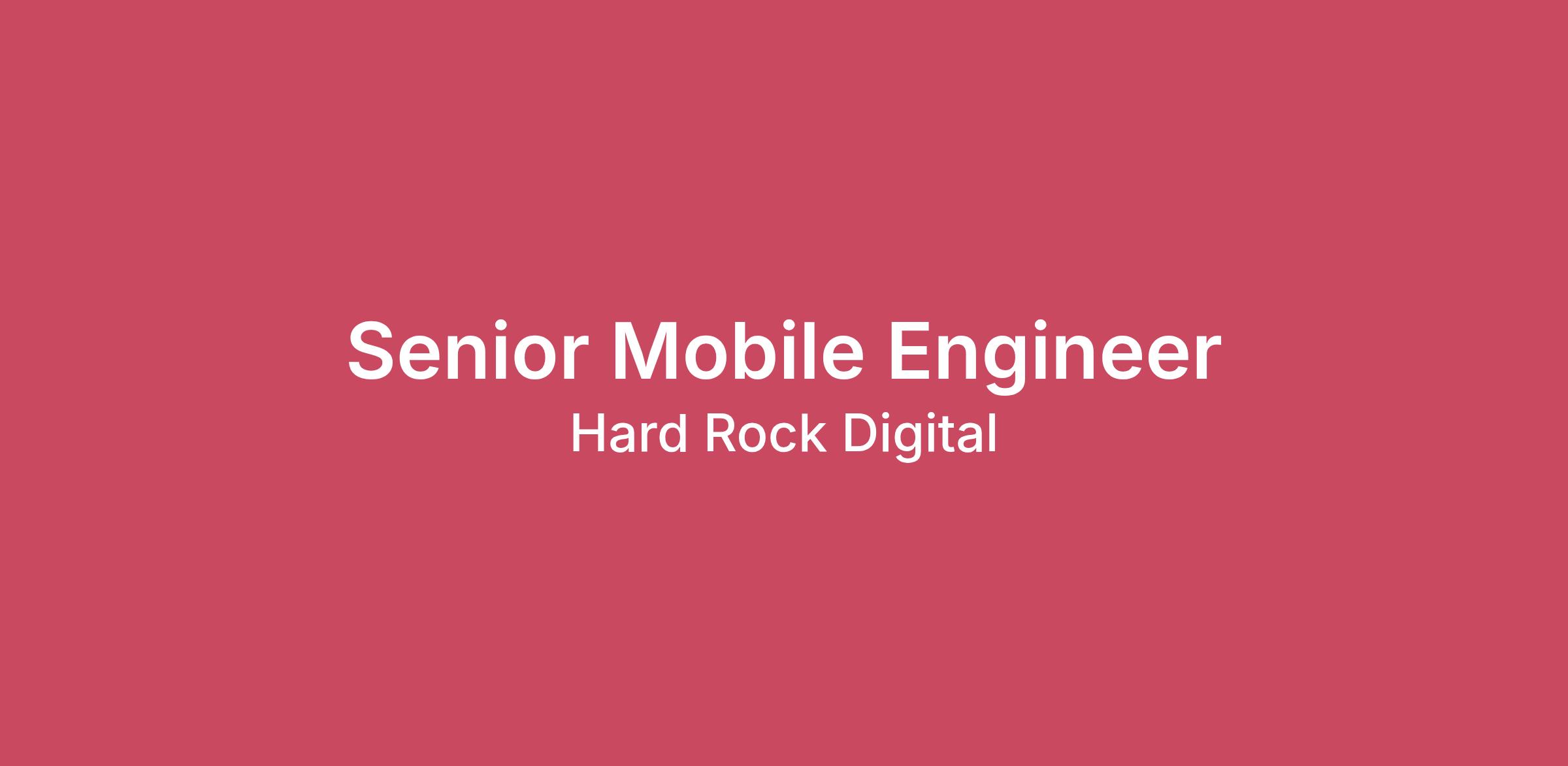 This is an exciting opportunity to join our rapidly growing technology team, responsible for continuous growth and support of an unrivaled betting experience for millions of sports fans everywhere. We’re looking for a Senior Mobile Engineer who will bring their creativity and experience to Hard Rock Sportsbook to help us build software with a spark of magic. This is a role that works closely with Product Management, Design, QA, and Backend Engineering to deliver a full-featured mobile app. The candidate should have a strong track record developing React Native apps, as well as experience with iOS and/or Android apps, preferably with a background in sportsbook, gaming, or a related industry.