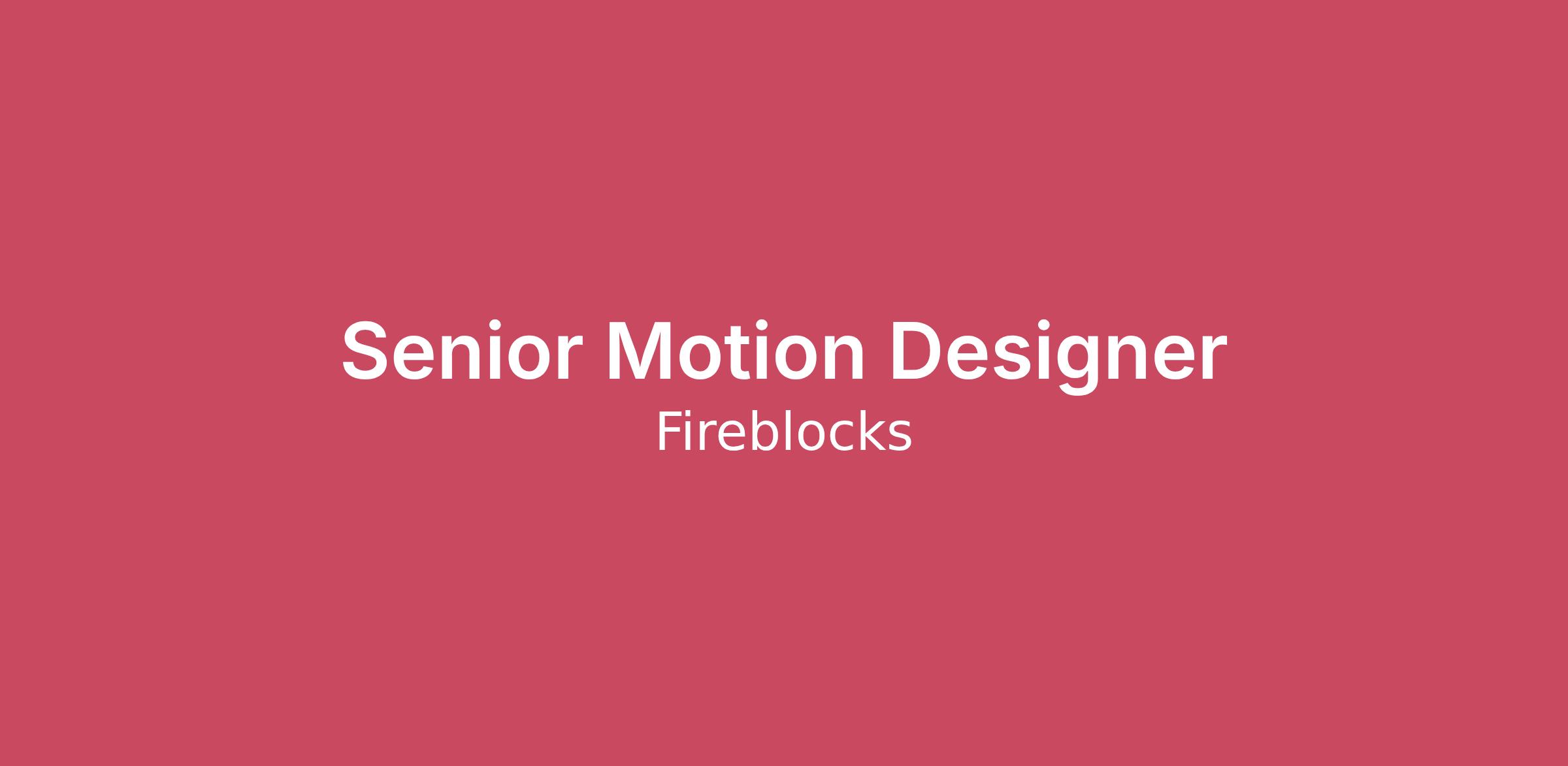 Fireblocks is looking for a Senior Motion Designer to help bring our brand to life through animation and video. This role sits within the Brand team and is responsible for defining how motion – across animation and live-action video – expresses the Fireblocks identity across marketing, web, events, and product experiences. Through motion, you will help connect our product, our story, and our technology into a cohesive and recognizable brand system.
