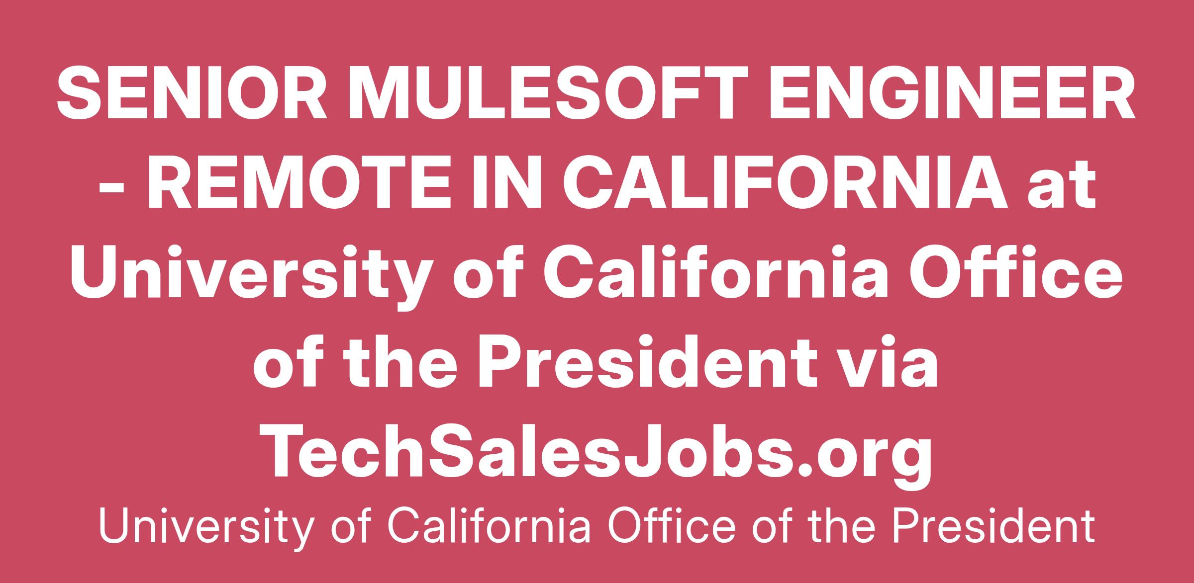 The Senior MuleSoft Engineer is responsible for MuleSoft development and system integration across UCOP, IT, UC campuses, and implementation partners. This role leads the integration of various internal and external systems within the UC system.
