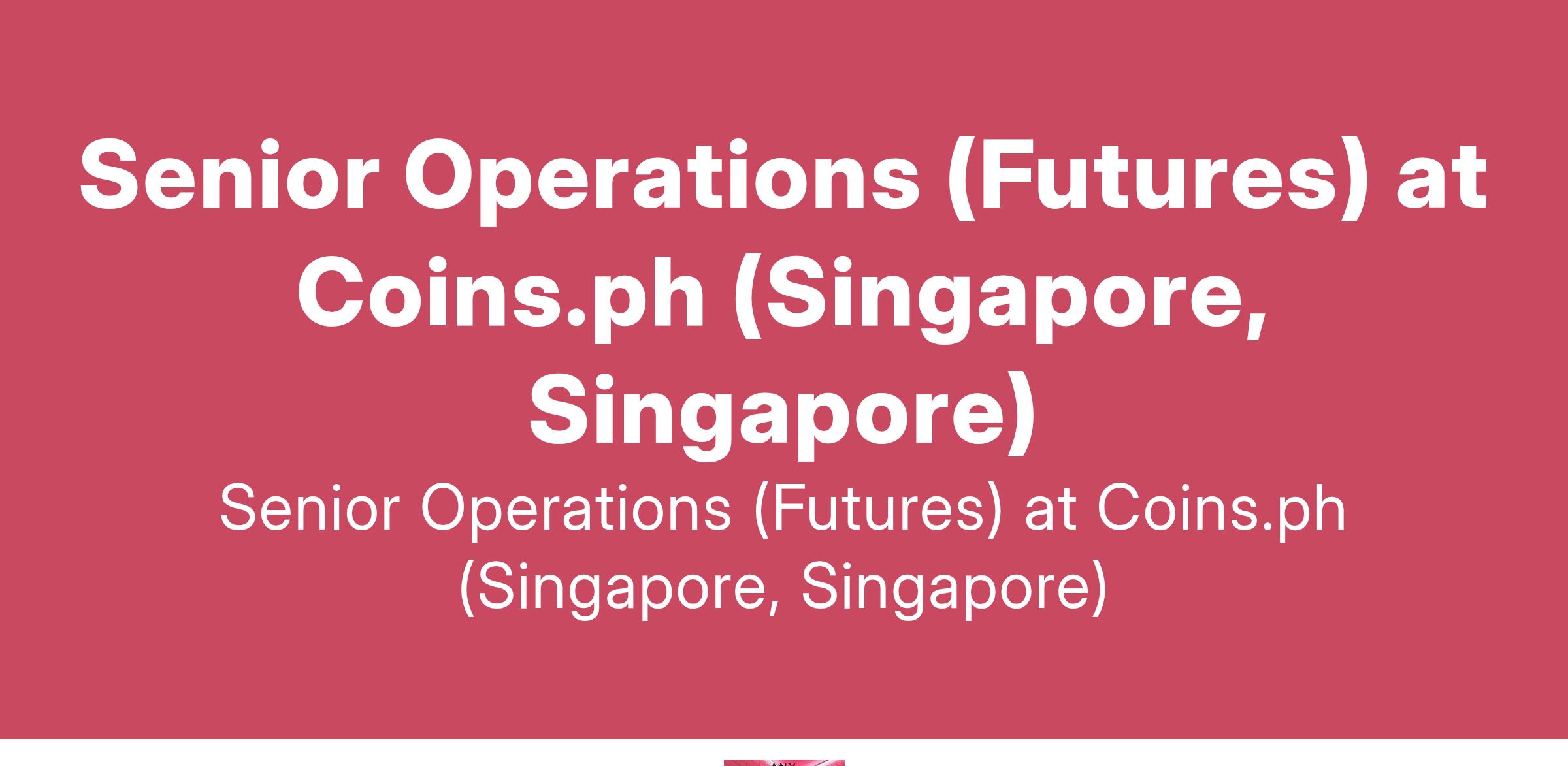 Senior Operations (Futures) at Coins.ph (Singapore, Singapore)