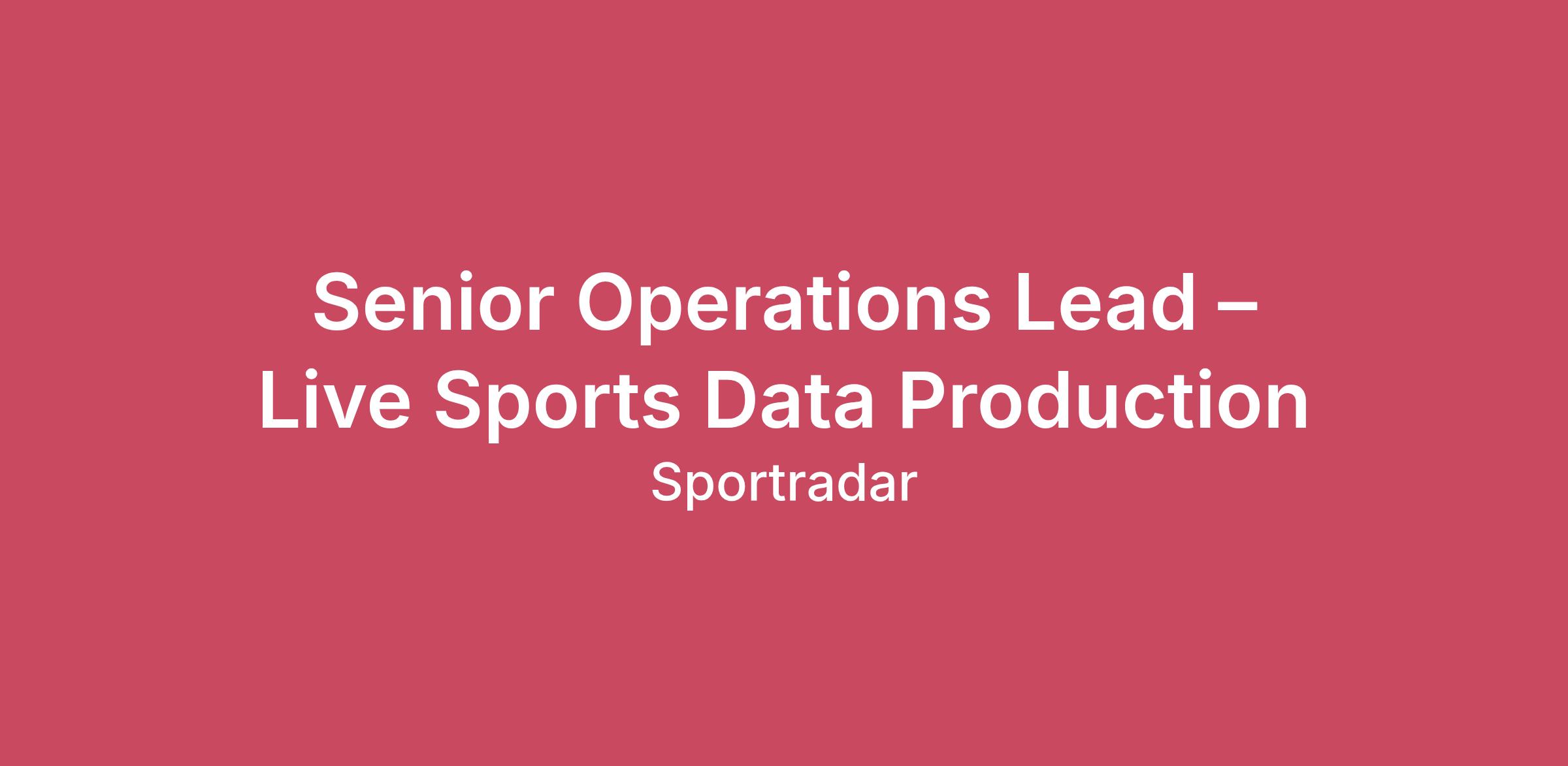 Senior Operations Lead – Live Sports Data Production