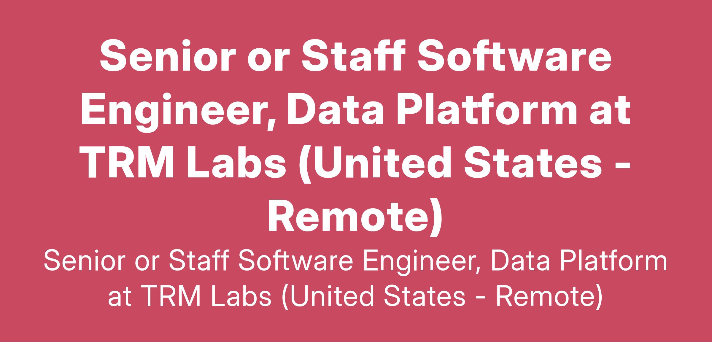 Senior or Staff Software Engineer, Data Platform at TRM Labs (United States - Remote)