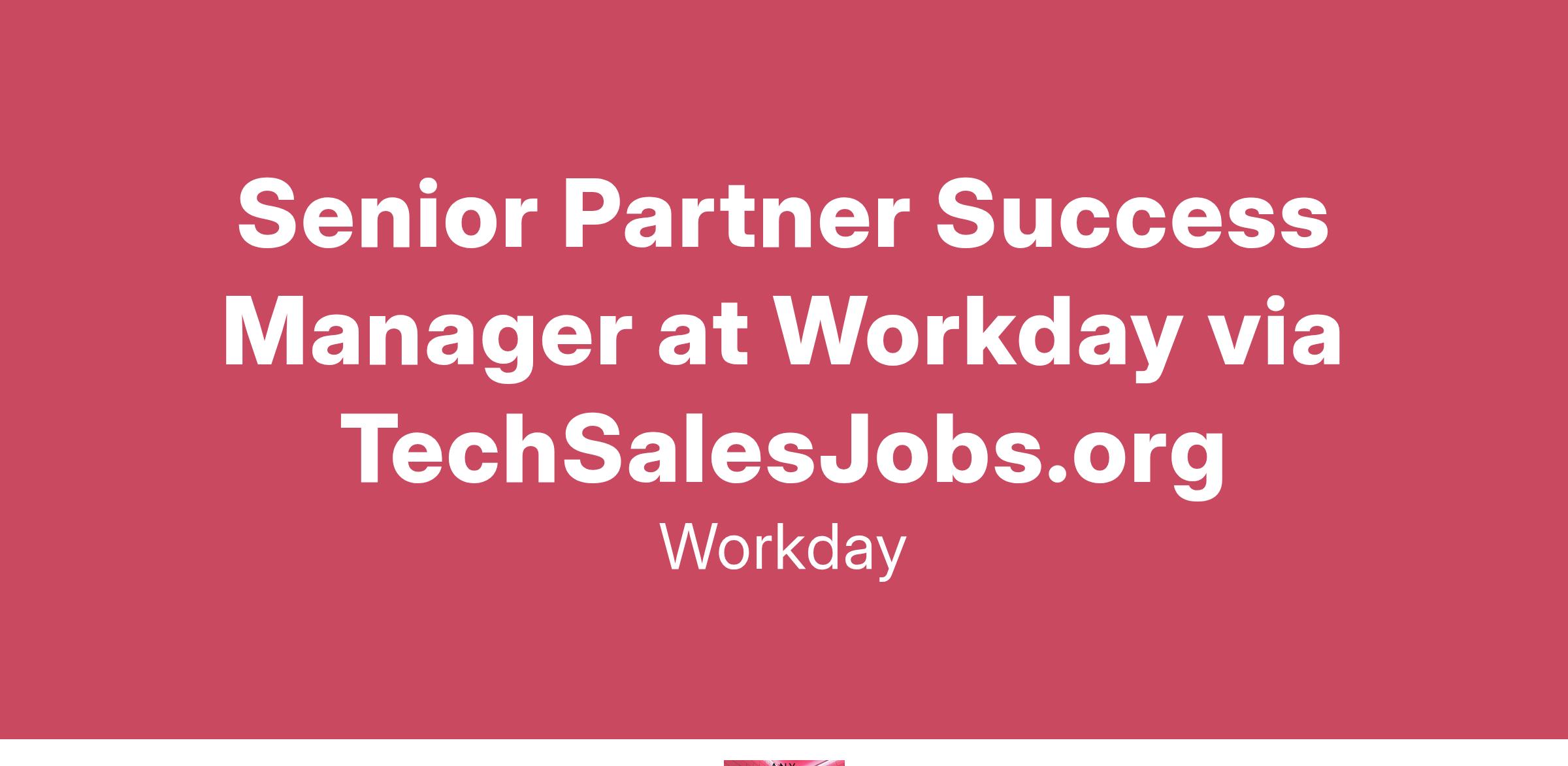 Senior Partner Success Manager at Workday via TechSalesJobs.org