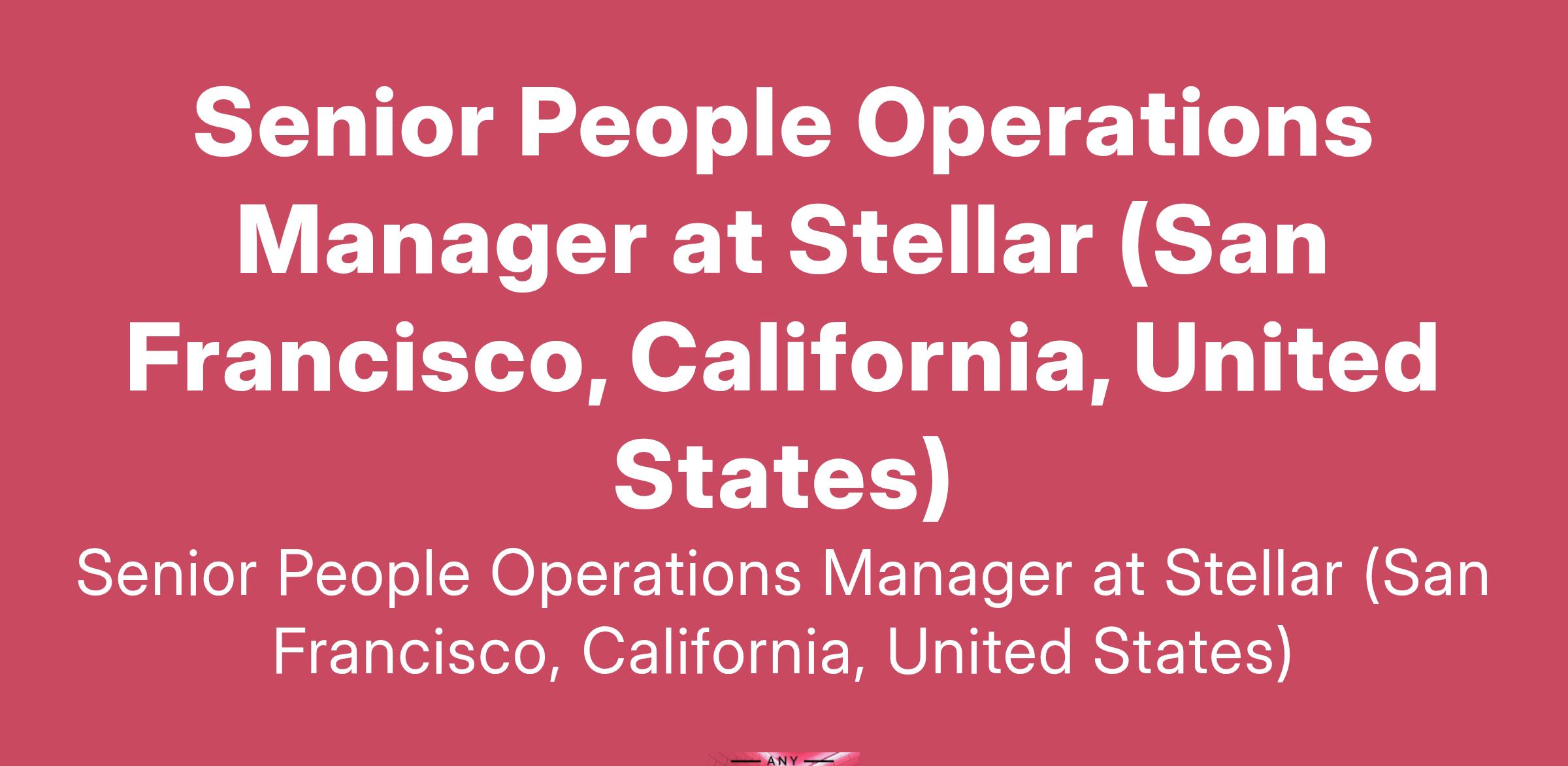 Senior People Operations Manager at Stellar (San Francisco, California, United States)
