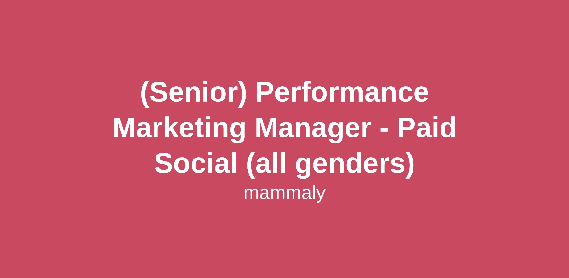 (Senior) Performance Marketing Manager - Paid Social (all genders)