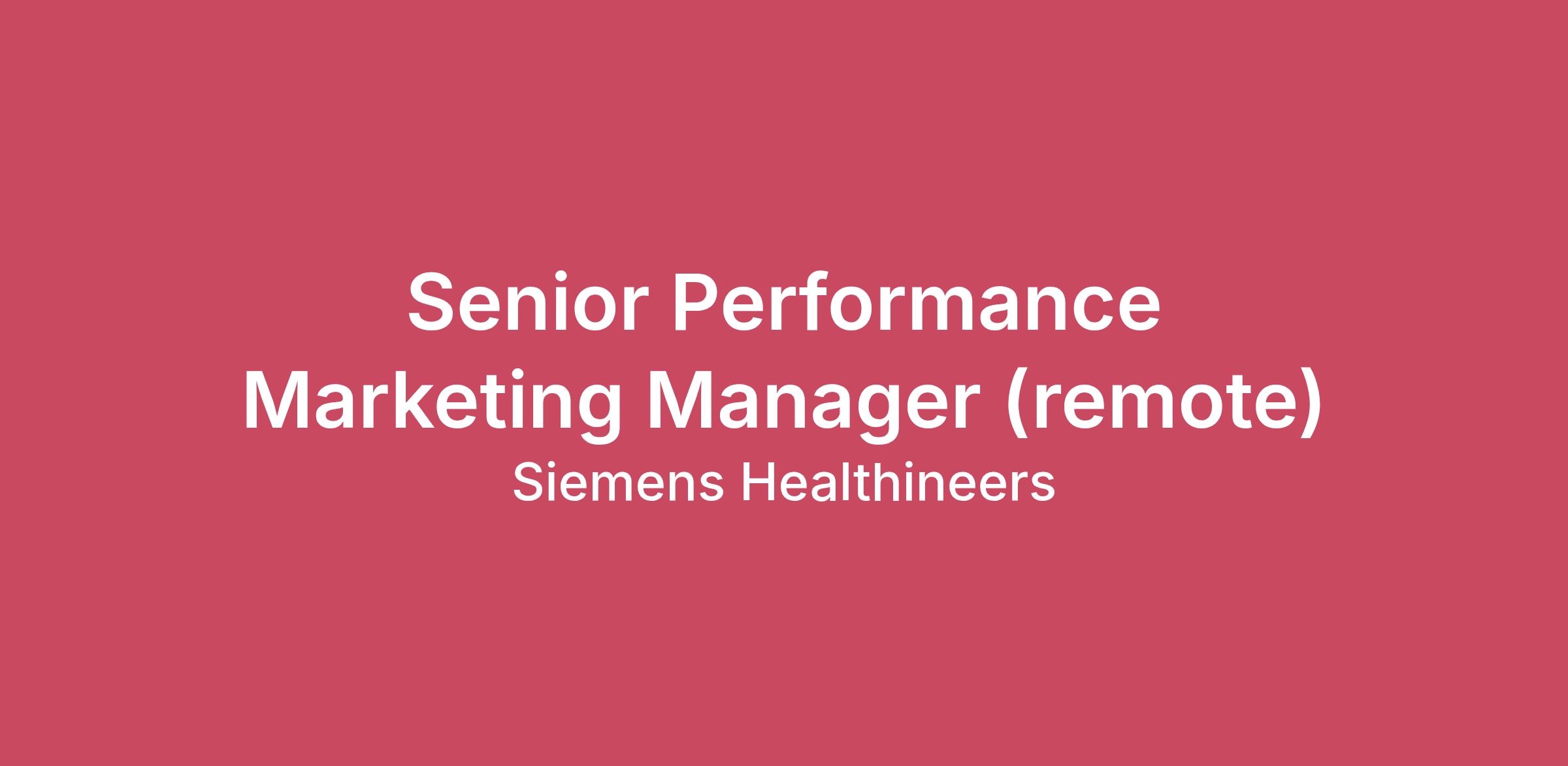 Join us in pioneering breakthroughs in healthcare. For everyone. Everywhere. Sustainably.Our inspiring and caring environment forms a global community that celebrates diversity and individuality. We encourage you to step beyond your comfort zone, offering resources and flexibility to foster your professional and personal growth, all while valuing your unique contributions.The Senior Performance Marketing Manager will enhance the operational effectiveness of global marketing campaigns by streamlining processes, aligning cross-functional teams, and ensuring seamless coordination between content strategy, digital strategy, and regional/zone marketing. This role drives performance through clear KPIs, dashboards, and actionable insights, while reporting on project execution, and budget tracking for the department. Builds organizational capability by creating toolkits and playbooks that strengthen campaign execution and elevate marketing performance across the organization. Will work cross-functionally with content, digital, and product marketing teams from three Siemens Healthineers business lines, to ensure our marketing campaigns run smoothly and effectively, and are optimally deployed to external audiences.Campaign Excellence and Cross-Functional CollaborationServes as the operational bridge between the content strategy team (messaging, narratives) and the digital strategy team (channel planning, execution) from planning to deployment. Drives alignment on priorities, handoff timelines, and deliverables.Identifies operational bottlenecks and drives efficiencies across teams (content strategy, digital, regional marketing). Aligns resources optimally, manages timelines, and mitigates risks to meet business objectives.Works with corporate marketing and other departments across Siemens Healthineers for the deployment of DX wide programs and pilots.Partners with Zone/Country marketing contacts to understand needs and develop support tools/processes to ensure campaigns are operationalized effectively.Performance OptimizationBuilds campaign dashboards to monitor performance in real-time.Tracks adoption of campaigns across regions (“Zones”) and ensure tight alignment on execution.Shares performance insights and best practices with key stakeholders to elevate campaign effectiveness.Reporting & GovernanceAnalyzes and presents campaign performance reports across channels, including digital, (search, social, email, webinars,) and provides strategic recommendations to leadership and key stakeholders. Reports on budget and department marketing deliverables across content and digital strategy teams.Manages a centralized Asset Library (e.g., CLS) for Global Marketing collateral.Capability Building & Best PracticesDevelops and delivers toolkits, and playbooks to elevate the marketing capabilities of both global and regional marketing teams.Stays current on industry trends and technologies and promotes knowledge sharing and change management across functions to standardize execution excellence.Implements consistent processes and frameworks that scale with the organization.Critical Competencies:Analytical & Data-Driven Decision Making – Ability to translate complex performance data into actionable insights and strategic recommendations.Marketing Operations Expertise – Deep understanding of campaign workflows, martech systems, and marketing governance.Cross-Functional Leadership & Influence – Skilled at aligning priorities and driving collaboration and influence, without direct authority. Program & Project Management – Proven ability to follow multiple concurrent global campaigns with tight timelines and complex dependencies.Change Leadership & Capability Building – Passion for creating scalable processes, developing playbooks, and coaching to elevate team capabilities, as needed.Executive-Level Communication – Strong written and verbal skills, with the ability to present clearly to senior leadership.Digital Knowledge, Fluency & Innovation Mindset – Digital competencies and knowledge of marketing automation tools and principles, content management and CRM systems. Curiosity for emerging trends, including AI in marketing, and ability to identify new tools and methods to increase performance and efficiency.Regulatory & Compliance Awareness – Understanding of healthcare marketing requirements and promotional review considerations.Job Functions:Ability to work in collaboration with colleagues, peers, stakeholders, external agencies and management to share knowledge and best practices.Ability to effectively manage and prioritize numerous projects with aggressive deadlines.Highly organized individual that maintains a high level of project management for day-to-day deliverables.Global campaign planning and orchestration, in close collaboration with content, digital, and regional teams. Partner with regional marketers to support localization, adoption, and execution of global campaigns.Solid understanding and implementation of digital campaign and best practices.Must have excellent communication, presentation skills and advanced knowledge of PPT.Build KPIs, dashboards, and reporting frameworks to enable data-driven decision making.Conduct performance analysis and implement optimization strategies based on campaign insights.Ensure clear operational handoffs, standardized workflows, and governance across teams.Maintain global asset libraries, templates, and documentation for consistent use across markets.Develop playbooks, and toolkits to drive operational excellence across global and regional marketing.Ability to identify, pilot, and scale new martech, analytics tools, and process improvements.Education/Experience:Bachelor’s degree in marketing, Digital Marketing, Business, Communications, or related field required.MBA or advanced degree preferred, especially with focus in marketing, analytics, or operations.10 years of marketing experience, with at least 3–5 years in marketing operations, perfo