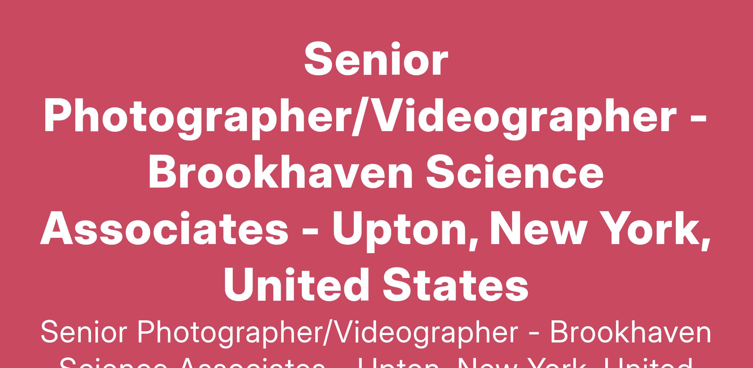 Brookhaven National Laboratory is hiring a Senior Photographer/Videographer who will work with a cross-functional team of creative professionals in the Lab’s Creative Resources group, including photographers, graphic designers, and copy service staff. The successful applicant will be proficient in all phases of highly skilled photography and video applications, from capture through editing, archiving, and file delivery, providing these services for customers across the Laboratory. The role also involves coordinating tasks in line with the job requirements, ranging from specialized scientific photography techniques to those involved with public outreach and communication. Additionally, the role provides scientific staff with technical expertise and guidance to effectively apply photographic methods in experimental research.