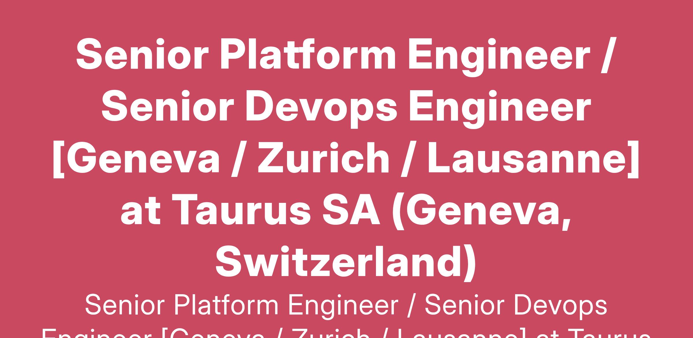 Senior Platform Engineer / Senior Devops Engineer [Geneva / Zurich / Lausanne] at Taurus SA (Geneva, Switzerland)
