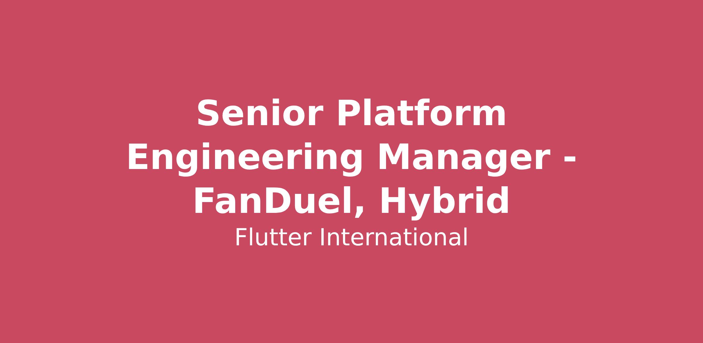 Senior Platform Engineering Manager - FanDuel, Hybrid