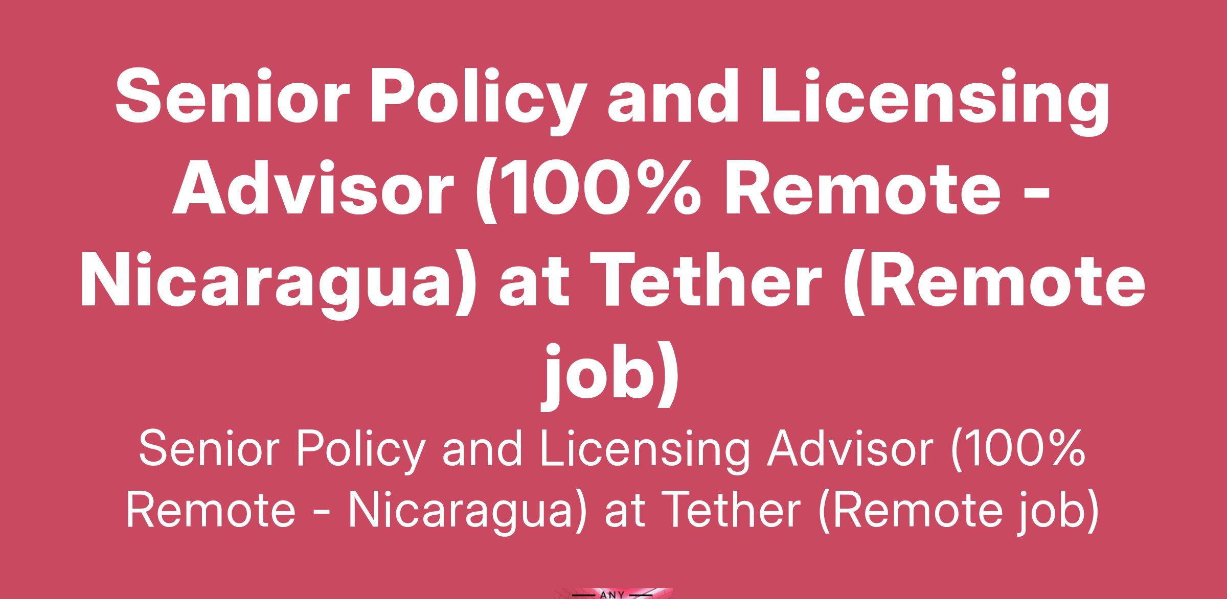 Senior Policy and Licensing Advisor (100% Remote - Nicaragua) at Tether (Remote job)