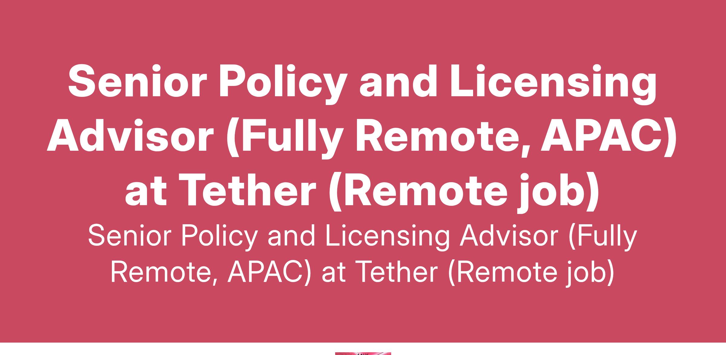 Senior Policy and Licensing Advisor (Fully Remote, APAC) at Tether (Remote job)
