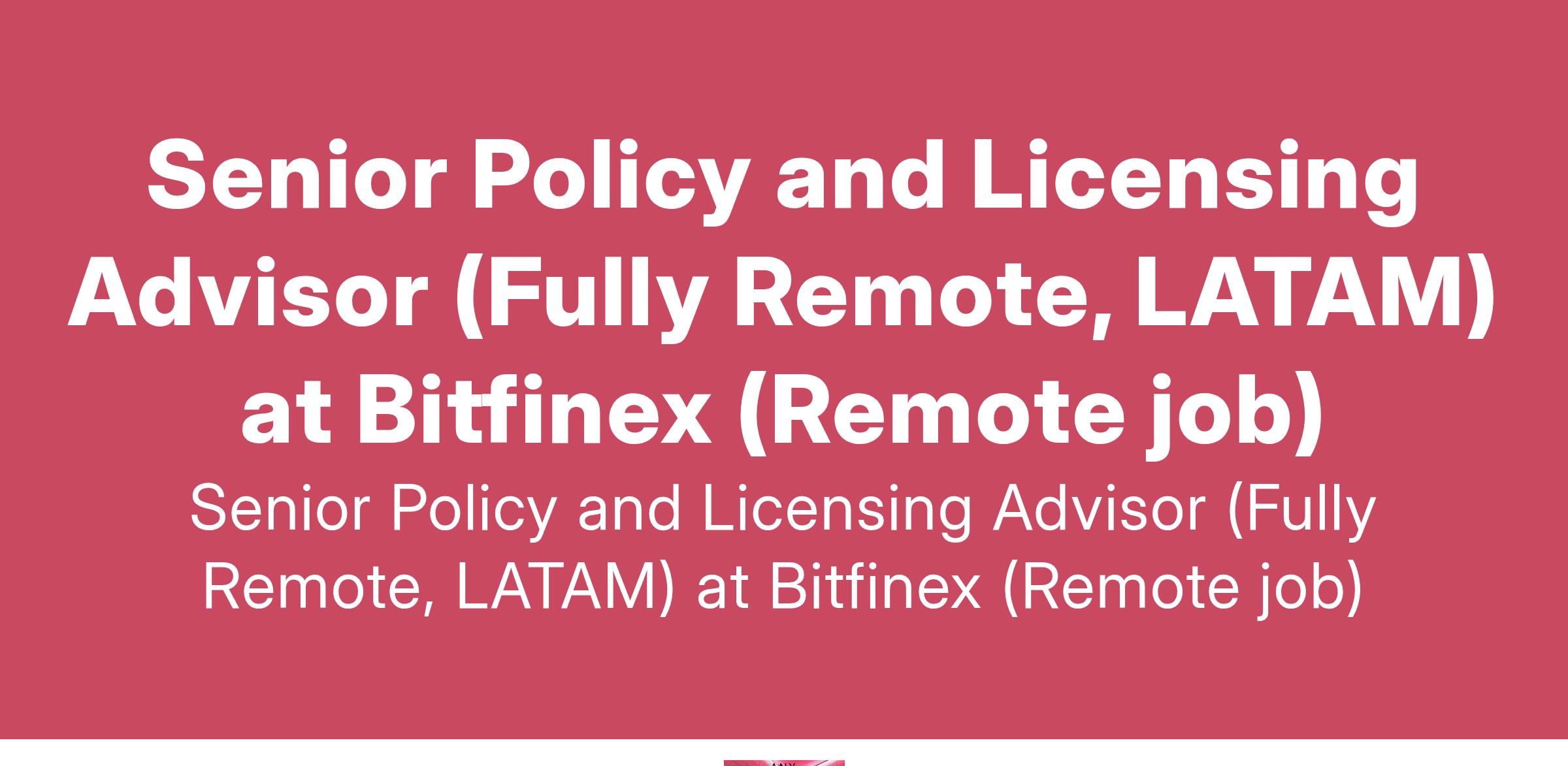 Senior Policy and Licensing Advisor (Fully Remote, LATAM) at Bitfinex (Remote job)