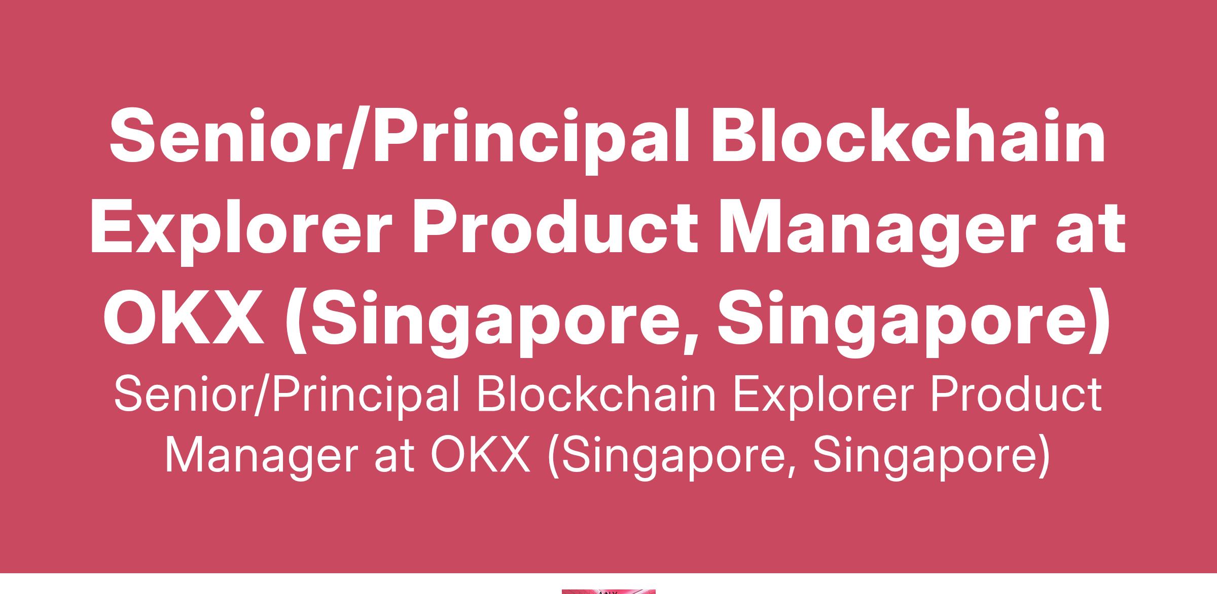 Senior/Principal Blockchain Explorer Product Manager at OKX (Singapore, Singapore)