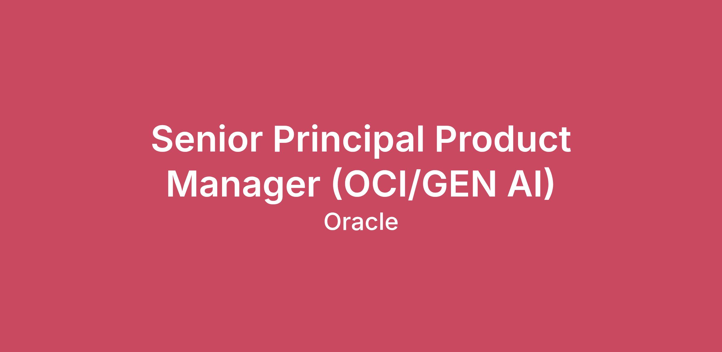 Description At Oracle Cloud Infrastructure (OCI), we build the future of the cloud for Enterprises as a complementary team of fellow creators and inventors. We act with the speed and demeanor of a start-up, with the scale and customer-focus of the leading enterprise software company in the world. We’re a cloud technology company that provides organizations around the world with computing infrastructure and software to help them innovate, unlock efficiencies, and become more effective. We also created the world’s first – and only – autonomous database to help organize and secure our customers’ data. Oracle Cloud Infrastructure offers higher performance, security, and cost savings. It is designed so businesses can move workloads easily from on-premises systems to the cloud, and between cloud and on-premises and other clouds. Oracle Cloud applications provide business leaders with modern applications that help them innovate, attain sustainable growth, and become more resilient.The work we do is not only transforming the world of business--it's helping defend governments, and advance scientific and medical research. From nonprofits to companies of all sizes, millions of people use our tools to streamline supply chains, make HR more human, quickly pivot to a new financial plan, and connect data and people around the world.Responsibilities Oracle is looking for a Senior Principal Product Manager for Oracle Cloud Infrastructure (OCI) Generative AI portfolio of services. Our customers run their business on our cloud, and our mission is to provide them with the best-in-class compute, storage, networking, database, security, and AI services in the cloud. This is a critical product leadership role and you will be responsible for the execution of our strategic direction. You will partner with other teams to drive new initiatives and deliver new services, features, and capabilities. The ideal candidate has deep knowledge of AI, machine learning operations, cloud architecture and experience operating in large organizations. You will gather and analyze information to define product specifications and review design specifications for inbound service/product development. Initiate and cultivate relationships with internal Database and SaaS application teams and large external customers of Generative AI technology. Review product documentation and collateral. Ensure successful product releases based on corporate priorities. Define product strategy and roadmap to deliver experiences that our customers love Have a deep understanding of the AI market and industry trends Ability to work across teams in a large organization Be enthusiastic, self-motivated, and a great collaborator Be our product evangelist - engage directly with customers and partners, participate and present in external events and conferences, etc ResponsibilitiesIn this role, you will be responsible for defining and leading the product vision, strategy, and roadmap for OCI’s GenAI offerings, ensuring our platform remains at the forefront of secure cloud and AI/ML QualificationsDisclaimer:Certain US customer or client-facing roles may be required to comply with applicable requirements, such as immunization and occupational health mandates.Range and benefit information provided in this posting are specific to the stated locations onlyUS: Hiring Range in USD from: $79,200 to $178,100 per annum. May be eligible for bonus and equity.Oracle maintains broad salary ranges for its roles in order to account for variations in knowledge, skills, experience, market conditions and locations, as well as reflect Oracle’s differing products, industries and lines of business.Candidates are typically placed into the range based on the preceding factors as well as internal peer equity.Oracle US offers a comprehensive benefits package which includes the following:1. Medical, dental, and vision insurance, including expert medical opinion2. Short term disability and long term disability3. Life insurance and AD&D4. Supplemental life insurance (Employee/Spouse/Child)5. Health care and dependent care Flexible Spending Accounts6. Pre-tax commuter and parking benefits7. 401(k) Savings and Investment Plan with company match8. Paid time off: Flexible Vacation is provided to all eligible employees assigned to a salaried (non-overtime eligible) position. Accrued Vacation is provided to all other employees eligible for vacation benefits. For employees working at least 35 hours per week, the vacation accrual rate is 13 days annually for the first three years of employment and 18 days annually for subsequent years of employment. Vacation accrual is prorated for employees working between 20 and 34 hours per week. Employees working fewer than 20 hours per week are not eligible for vacation.9. 11 paid holidays10. Paid sick leave: 72 hours of paid sick leave upon date of hire. Refreshes each calendar year. Unused balance will carry over each year up to a maximum cap of 112 hours.11. Paid parental leave12. Adoption assistance13. Employee Stock Purchase Plan14. Financial planning and group legal15. Voluntary benefits including auto, homeowner and pet insuranceThe role will generally accept applications for at least three calendar days from the posting date or as long as the job remains posted.Career Level - IC3