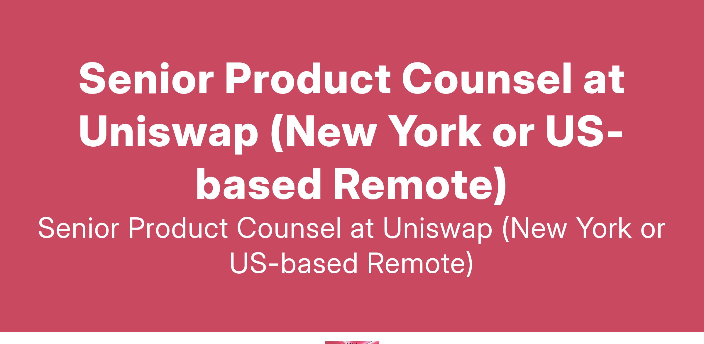 Senior Product Counsel at Uniswap (New York or US-based Remote)