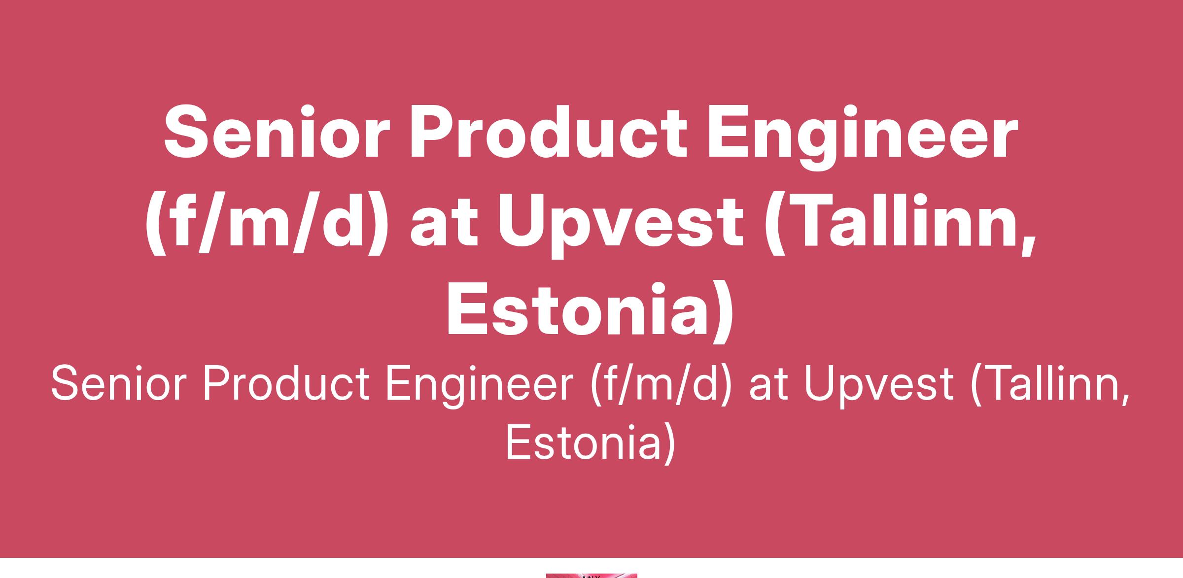 Senior Product Engineer (f/m/d) at Upvest (Tallinn, Estonia)