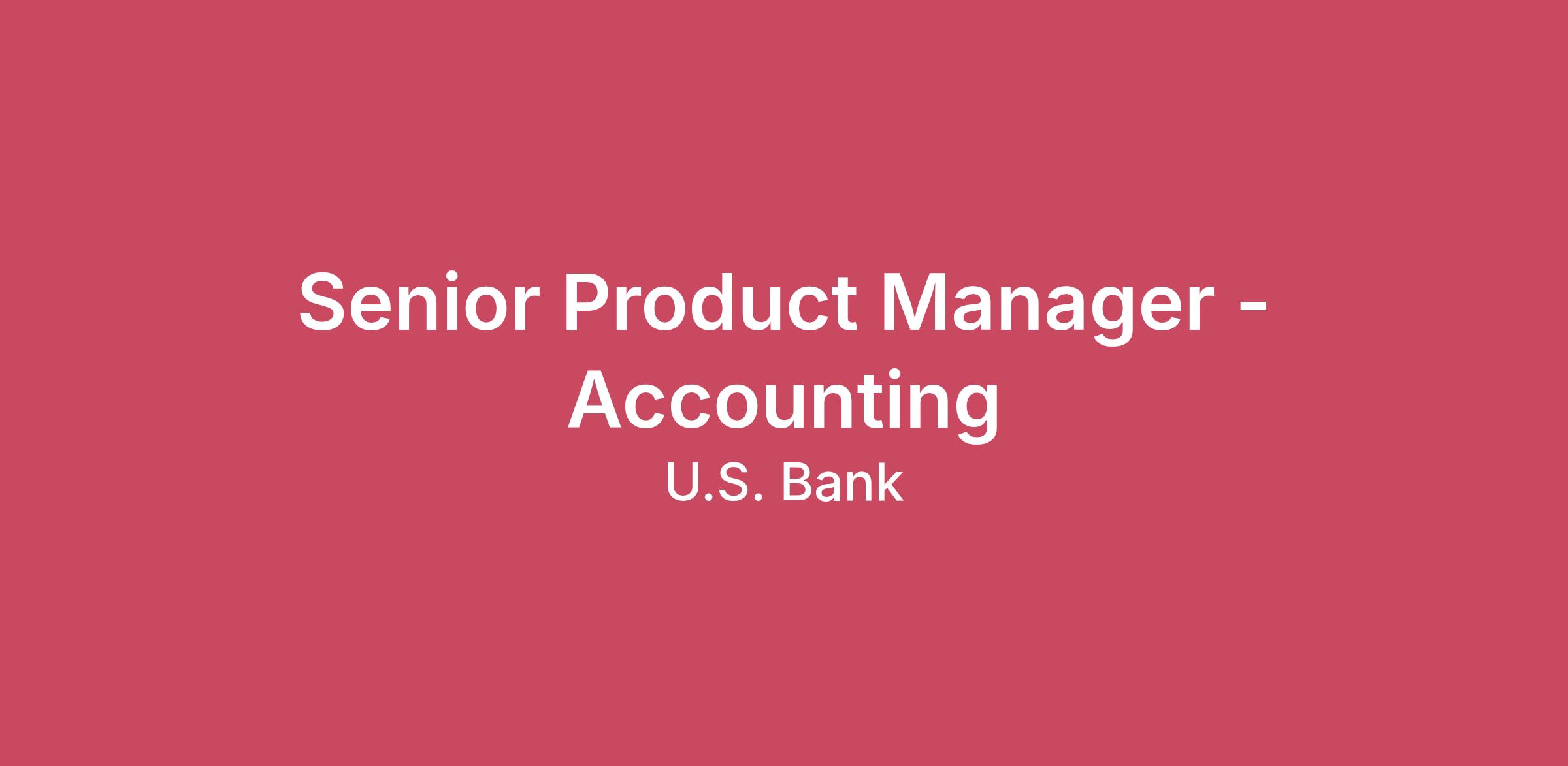 At U.S. Bank, we’re on a journey to do our best. Helping the customers and businesses we serve to make better and smarter financial decisions and enabling the communities we support to grow and succeed. We believe it takes all of us to bring our shared ambition to life, and each person is unique in their potential. A career with U.S. Bank gives you a wide, ever-growing range of opportunities to discover what makes you thrive at every stage of your career. Try new things, learn new skills and discover what you excel at—all from Day One.Job DescriptionAs a Senior Product Manager, you lead the accounting product area end-to-end (or deliver a high-complexity product as an IC with unique expertise). You set vision, own OKRs, and orchestrate cross-functional delivery to achieve meaningful customer and business outcomes. This role is ideal for a Product Manager with deep experience building or integrating products with small‑ and mid‑market accounting platforms (e.g., QuickBooks, Xero, Sage, NetSuite). You bring strong domain knowledge of accounting workflows, data models, and customer pain points and know how to translate them into scalable, compliant, and intuitive product experiences.Key responsibilities Product profitability & strategy: Define/evangelize strategy; align investment areas and success measures to deliver portfolio outcomes. End-to-end delivery leadership: Direct discovery → launch, manage dependencies across teams, and maximize return on spend. Cross-channel performance: Shape integrated experiences that drive adoption, engagement, and revenue—leveraging enterprise platforms. Customer insight & PMF: Demonstrate deep customer understanding; validate and scale product market fit. GTM & analytics: Partner with marketing/sales/ops; define multichannel strategy, budget, and KPIs to drive growth. Set a compelling product vision and multi‑year strategy for a product area; align executives and partner leaders to an investment thesis. Lead multi‑team programs end‑to‑end, sequencing work across squads; managing risks and negotiating resourcing across functions. Architect the KPI and forecasting model for the area; tie leading indicators to financial results and govern them. Shape cross‑channel experiences at scale, eliminating systemic friction to drive adoption, engagement, and revenue. Sponsor organizational change (enablement, policy/process updates) that unlocks customer and internal adoption. Own and evolve integrations with accounting platforms (e.g., QuickBooks, Xero, Sage), ensuring accurate data flows, reconciliation, and a seamless customer experience. Partner closely with accounting software providers and internal finance, risk, and engineering teams to deliver reliable, scalable financial integrations. Translate accounting workflows (GL mapping, categorization, reconciliation, close processes) into intuitive product capabilities for SMB customers. Identify opportunities to deepen value through accounting‑adjacent features (automation, reporting, controls) that drive adoption and retention. Ensure integrations meet enterprise‑grade standards for accuracy, auditability, security, and compliance. Basic QualificationsProduct Management experiencePreferred Skills/ExperienceBachelor's degree in business, Finance or Computer Science preferred, or equivalent work experience Responsible for product teams delivering solutions end-to-end or for high-complexity products as an IC. 10 years of product management experience Expert strength in vision/planning, product development strategy, decision-making, lifecycle, change management; experience shaping cross-channel experiences and scaling adoption; mentoring PMs and influencing practices beyond your team. Direct product experience with one or more accounting software platforms (QuickBooks, Xero, Sage, NetSuite, or similar), either as an integration partner or core platform contributor. Strong understanding of SMB accounting workflows, including expense categorization, GL mapping, reconciliation, month‑end close, and financial reporting. Experience shipping and scaling financial data integrations with high expectations for accuracy, reliability, and compliance. Ability to partner effectively with finance, accounting, risk, and compliance stakeholders while delivering customer‑centric experiences. The role offers a hybrid/flexible schedule, which means there's an in-office expectation of 3 or more days per week and the flexibility to work outside the office location for the other days.If there’s anything we can do to accommodate a disability during any portion of the application or hiring process, please refer to our disability accommodations for applicants. Benefits: Our approach to benefits and total rewards considers our team members’ whole selves and what may be needed to thrive in and outside work. That's why our benefits are designed to help you and your family boost your health, protect your financial security and give you peace of mind. Our benefits include the following:Healthcare (medical, dental, vision)Basic term and optional term life insuranceShort-term and long-term disabilityPregnancy disability and parental leave401(k) and employer-funded retirement planPaid vacation (from two to five weeks depending on salary grade and tenure)Up to 11 paid holiday opportunitiesAdoption assistanceSick and Safe Leave accruals of one hour for every 30 worked, up to 80 hours per calendar year unless otherwise provided by lawReview our full benefits available by employment status here. U.S. Bank is an equal opportunity employer. We consider all qualified applicants without regard to race, religion, color, sex, national origin, age, sexual orientation, gender identity, disability or veteran status, and other factors protected under applicable law.E-VerifyU.S. Bank participates in the U.S. Department of Homeland Security E-Verify program in all facilities located in the United States and certain U.S. territories