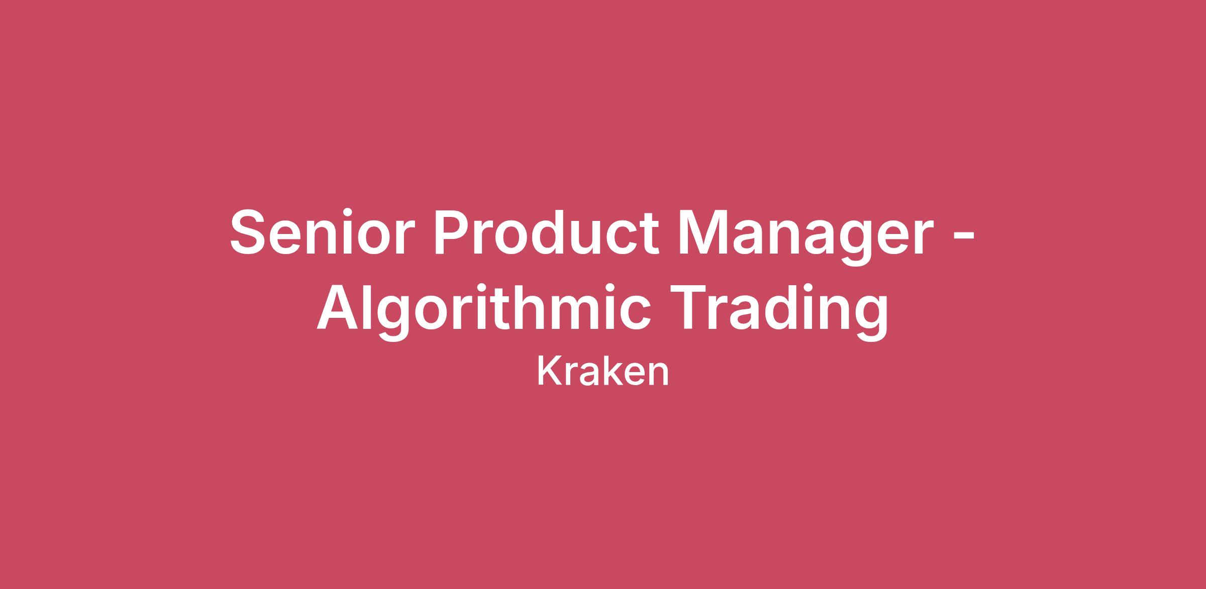 Building the Future of Crypto Our Krakenites are a world-class team with crypto conviction, united by our desire to discover and unlock the potential of crypto and blockchain technology.What makes us different? Kraken is a mission-focused company rooted in crypto values. As a Krakenite, you’ll join us on our mission to accelerate the global adoption of crypto, so that everyone can achieve financial freedom and inclusion. For over a decade, Kraken’s focus on our mission and crypto ethos has attracted many of the most talented crypto experts in the world.Before you apply, please read the Kraken Culture page to learn more about our internal culture, values, and mission. We also expect candidates to familiarize themselves with the Kraken app. Learn how to create a Kraken account here.As a fully remote company, we have Krakenites in 70+ countries who speak over 50 languages. Krakenites are industry pioneers who develop premium crypto products for experienced traders, institutions, and newcomers to the space. Kraken is committed to industry-leading security, crypto education, and world-class client support through our products like Kraken Pro, Desktop, Wallet, and Kraken Futures.Become a Krakenite and build the future of crypto!Proof of workThe teamKraken is building the execution infrastructure that will power the next generation of professional and institutional crypto trading — and, increasingly, the AI agents that trade on their behalf. This role sits at the heart of that mission: owning the Algorithmic Execution & Strategy Engine, Kraken’s platform for complex order types, smart execution algorithms, and programmable strategy construction.We are looking for a product manager who has lived and breathed electronic trading in a Tier 1 bank or algorithmic trading firm — someone who has shipped execution algos, spoken FIX with quant developers, and understands why basis points matter. Your mission is to port the best of TradFi execution into crypto and build the platform that both humans and AI agents will rely on to execute with precision.The opportunityOwn and drive the roadmap for Kraken’s Algorithmic Execution & Strategy Engine, defining the multi-year vision and aligning it with Kraken’s institutional and pro-trading growth strategy.Design and deliver new execution algorithms — TWAP, VWAP, Implementation Shortfall, Participation, scaled orders, and conditional order flows — drawing on deep knowledge of TradFi execution best practice.Build out the strategy construction interface — a programmable layer that allows professional traders and institutions to compose, test, and deploy execution strategies without writing code.Own the API and FIX protocol specification for programmatic access to the algo engine, working closely with engineering and client solutions to ensure low-latency, high-reliability access for institutional clients.Define transaction cost analysis (TCA) and execution quality frameworks; work with the data science team to instrument, measure, and continuously improve execution performance.Establish the agentic integration framework: design the interfaces and capability set that allow AI trading agents to interact safely and effectively with Kraken’s execution infrastructure.Partner with Quant Research and Engineering to evaluate and integrate ML/AI-driven enhancements to the execution stack, including adaptive routing and predictive scheduling.Engage directly with institutional clients, prime brokerage relationships, and professional traders to surface execution needs and translate them into product requirements.Skills you should HODL5+ years of product management experience, with at least 2 years in an electronic trading or algorithmic trading environment (investment bank e-trading desk, HFT firm, quant hedge fund, or equivalent).Deep domain knowledge of execution algorithms: TWAP, VWAP, Implementation Shortfall, Percentage of Volume (POV), and smart order routing logic.Strong understanding of market microstructure: order book dynamics, venue selection, lit vs. dark execution, latency arbitrage, and market impact modelling.Quantitative confidence: fluent in TCA methodology, slippage analysis, fill rate analysis, and execution quality benchmarking.Proven track record of shipping high-quality execution or trading infrastructure products — not just roadmaps, but products that are live, used, and measured.Experience working with institutional or professional trader segments; able to hold credible, technically deep conversations with quant PMs, execution traders, and CTOs.Strong grasp of regulatory requirements governing electronic and algorithmic trading (MiFID II / RTS6, CFTC, or equivalent).Exceptional communication skills: able to distil complex execution mechanics for non-technical stakeholders and translate vague institutional client needs into precise engineering requirements.Nice to havesCrypto-native experience: trading on crypto exchanges, familiarity with crypto market microstructure, or prior crypto product role.Experience building or integrating with AI/ML-driven execution systems, adaptive algorithms, or agentic trading platforms.Exposure to DeFi execution mechanics: DEX aggregators, AMMs, cross-chain routing, and on-chain order flow.Experience with no-code / low-code strategy builders or visual workflow tools for quantitative trading.Unless a specific application deadline is stated in the job posting, applications are accepted on an ongoing basis.Please note, applicants are permitted to redact or remove information on their resume that identifies age, date of birth, or dates of attendance at or graduation from an educational institution.We consider qualified applicants with criminal histories for employment on our team, assessing candidates in a manner consistent with the requirements of the San Francisco Fair Chance Ordinance.Kraken is powered by people from around the world and we celebrate all Krakenites for their diverse talents, backgro