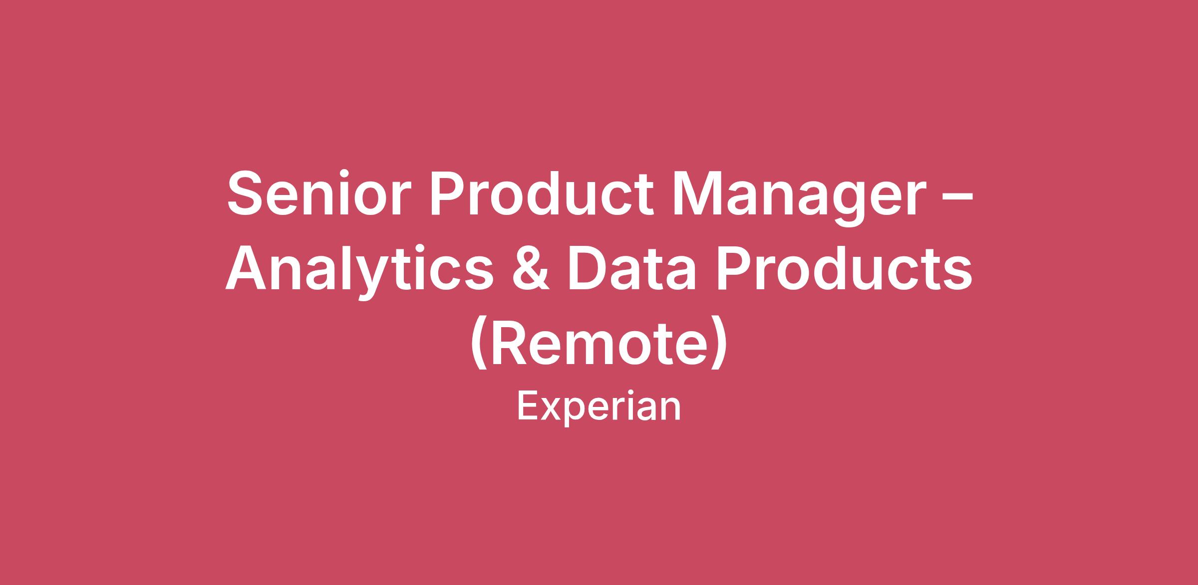 Senior Product Manager – Analytics & Data Products (Remote)