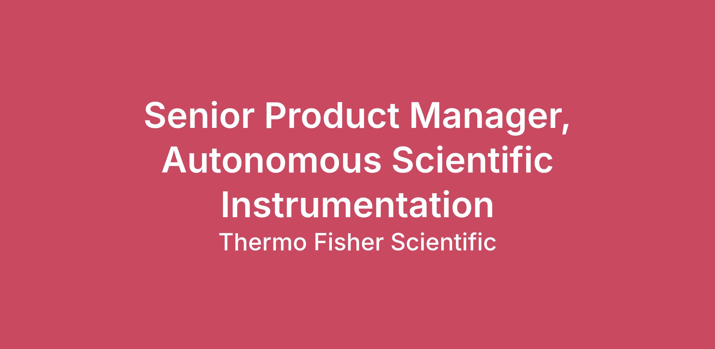 Work ScheduleStandard (Mon-Fri)Environmental ConditionsOfficeJob DescriptionThermo Fisher Scientific is seeking a strategic Senior Product Manager to lead the development and commercialization of Autonomous Scientific Instrumentation designed to operate seamlessly within next-generation autonomous laboratory workflows. This role will define how core analytical and life sciences instruments evolve to become intelligent, self-optimizing, and interoperable components of integrated scientific ecosystems.The Senior Product Manager will drive product strategy in close collaboration with strategic customers and Thermo Fisher business units to ensure instruments are architected with standardized interfaces, real-time data exchange capabilities, and embedded intelligence that enable scalable integration across workflows.Key ResponsibilitiesStrategic Product Vision & Portfolio LeadershipDefine long-term platform strategy for autonomous-ready scientific instrumentation aligned to corporate and business unit priorities.Develop structured market analyses, competitive landscapes, and investment theses to support portfolio decisions.Build multi-year roadmaps supported by data-driven prioritization and clear financial business cases.Strategic Partnerships & Ecosystem DevelopmentCollaborate with technology partners to align instrument architectures with advanced computing and acceleration platforms.Engage strategic external customers as co-innovation partners to validate autonomous instrument capabilities in real-world workflows.Represent Thermo Fisher in ecosystem discussions shaping future standards for intelligent laboratory systems.Customer Insight & PrioritizationLead structured voice-of-customer initiatives to identify high-impact workflow pain points and autonomy use cases.Translate customer insights into prioritized product requirements and differentiated value propositions.Balance near-term commercial opportunities with long-term autonomous platform strategy.Go-to-Market StrategyDefine new go to market models for autonomous instrumentation, including hardware, software, analytics, and service.Develop compelling customer value creation and workflow performance improvements.Drive adoption strategies that accelerate broad ecosystem development.Cross-Business Alignment & ExecutionAlign business units on common architectural standards and shared development priorities.Partner with R&D, engineering, regulatory, and operations teams to execute stage-gate development programs.Define KPIs including interoperability adoption, workflow integration success, instrument intelligence utilization, and revenue growth.How Will You Get HereEducation & ExperienceBachelor’s degree in Engineering, Life Sciences, or related field with 10+ years of experience; advanced degree (MBA, MS, or PhD) preferred.Demonstrated experience driving cross-functional product strategies for life sciencesTechnical & Business ExpertiseStrong understanding of analytical and life sciences instrumentation architectures.Proven ability to develop business cases, financial models, and commercialization strategies for advanced technology platforms.Leadership CompetenciesExecutive presence and ability to influence across global business units and external partners.Strategic systems thinker with disciplined execution capability.Strong collaboration and stakeholder alignment skills in matrixed organizations.ImpactIn this role, you will define how Thermo Fisher Scientific’s core instrumentation portfolio evolves to become foundational building blocks of autonomous scientific workflows. You will help shape the go to market strategy for intelligent scientific platforms across a global ecosystem.At Thermo Fisher Scientific, you will encounter a dynamic, forward-looking organization with remarkable career and advancement possibilities. We uphold a culture grounded in integrity, passion, participation, and inventive thinking. Join us to contribute meaningfully!Apply today: http://jobs.thermofisher.comMust be legally authorized to work in the United States without sponsorship.Must be able to pass a comprehensive background check, which includes a drug screening.BenefitsWe offer competitive remuneration, annual incentive plan bonuses, healthcare coverage, and a comprehensive range of employee benefits.Thermo Fisher Scientific is an EEO/Affirmative Action Employer and does not discriminate based on race, color, religion, sex, sexual orientation, gender identity, national origin, protected veteran status, disability, or any other legally protected status.Accessibility/Disability AccessThermo Fisher Scientific provides accessibility services for applicants needing accommodations during the job application process. This includes people who have hearing, vision, mobility, or cognitive challenges. If you have a disability, or are helping someone who does, and need assistance to apply, please call 1-855-471-2255*. Share your contact details and explain the accommodation you require.This phone line is dedicated exclusively to job seekers with disabilities who need accessibility support or help with job application accommodations. Calls for other reasons, like trouble accessing the career site, application follow-ups, or unrelated technical problems will not be answered.Compensation and BenefitsThe salary range estimated for this position based in California is $150,000.00–$190,000.00.This position may also be eligible to receive a variable annual bonus based on company, team, and/or individual performance results in accordance with company policy. We offer a comprehensive Total Rewards package that our U.S. colleagues and their families can count on, which includes:A choice of national medical and dental plans, and a national vision plan, including health incentive programsEmployee assistance and family support programs, including commuter benefits and tuition reimbursementAt least 120 hours paid time off (PTO), 10 paid holidays annually, paid parental leav