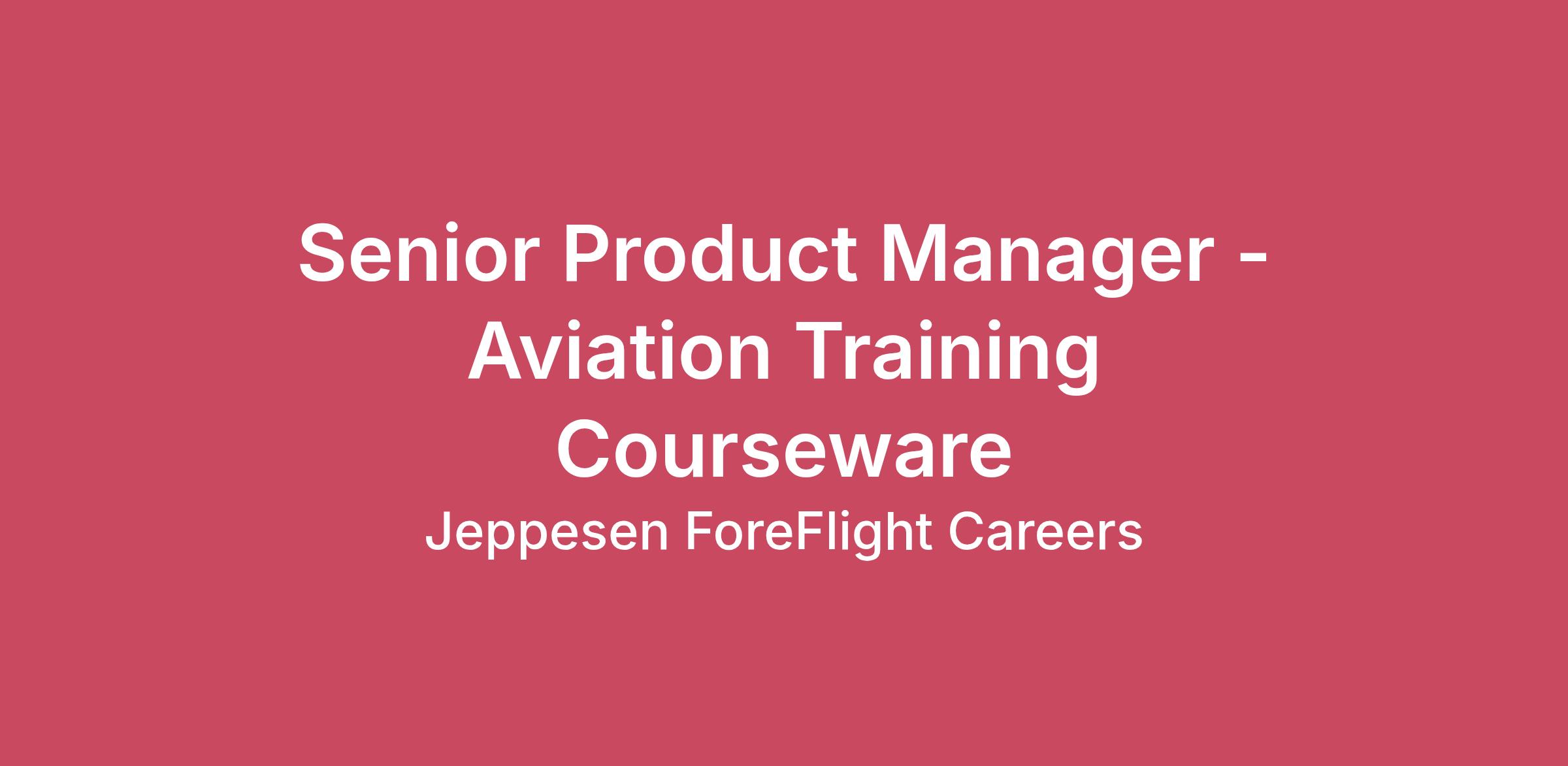 Jeppesen ForeFlight is looking for an outgoing and hardworking Senior Product Manager - Aviation Training Courseware to join their Flight Services portfolio team. This individual will research, plan, organize, and manage the day-to-day of an assigned product line from concept through product life cycles in order to optimize profit and meet marketing, financial, and growth objectives. The ideal candidate should possess a background in aviation flight training and have knowledge of technologies/domains such as learning management systems, aviation training curriculum, instructional design, and the FAA Flight Training Standards. The ideal candidate should also have experience with Part 61 and Part 141 flight school operations and FAA Training Course Outline (TCO) approvals. This role will be Hybrid from Englewood CO. Job Duties: Research and create product requirements and develop appropriate programs to ensure they’re successfully achieved. Leads the project through discovery, execution and support Ensures that projects progress on schedule and within prescribed budget Identifies market potential, establishes pricing and market strategies and estimates potential sales Conducts research and develops a solid understanding of the customer’s needs, new technologies, trends in the market, and competitors. Participates in overall product strategy, research and development requirements, development, and manufacturing coordination for new and emerging products Collaborates with various functional areas such as sales, support, QA, engineering, and marketing to develop and provide product definitions responsive to customer needs and market opportunities Partners with marketing to prepare marketing strategies and deliverables that reflect the brand and product identity. Partners with sales to ensure that customer targets and product messaging are effective. Develops metrics used to conduct an ongoing analysis of the effectiveness and value of the product/project. Surfaces new and innovative ideas for product improvements. Job Requirements: Minimum of 6 years flight training experience required Minimum of 3 years Product Management experience required including managing a team Excellent organizational and product management skills are required, preferably with previous software product management experience. Strong analytical skills and ability to use data to drive decision making. Excellent listening skills, including the ability to identify and isolate customers concerns or objections Excellent written and oral skills with the ability to effectively communicate with both technical and non-technical stakeholders. Occasional travel required 10% Preferred Qualifications: Bachelor's degree required Chief pilot or assistant chief pilot for Part 141 schools Has experience with school and instructor management systems for student enrollment, flight logs, pilot certificates, endorsement, progress tracking of checkrides, FAA TCO approvals, etc. Has experience teaching using Jeppesen and ForeFlight products Agile methodology Atlassian User research Why You Should Join (USA): At Jeppesen ForeFlight, we know you want a rewarding career. To do that, you need challenging projects, a good work environment, and awesome coworkers. We believe in our employees, and we empower them to make a direct impact on our products and services messaging. We strive to provide ForeFlighters and their loved ones with a world-class benefits experience, focused on supporting their physical, financial, and emotional wellbeing. Our benefits package includes but not limited to the following: Medical, dental, vision insurance with Employer paid health premiums Open PTO Policy 401(k) with up to 10% company matching and immediate vesting 12 Weeks Paid Maternity Leave 4 Weeks Paid Paternity Leave Flight Training Rewards Pay is based upon candidate experience and qualifications, as well market and business considerations: Summary Pay Range: $131,000.00-$170,000.00 Jeppesen ForeFlight – EOE including Disability/Vets | Pay Transparency | E-Verify Participant