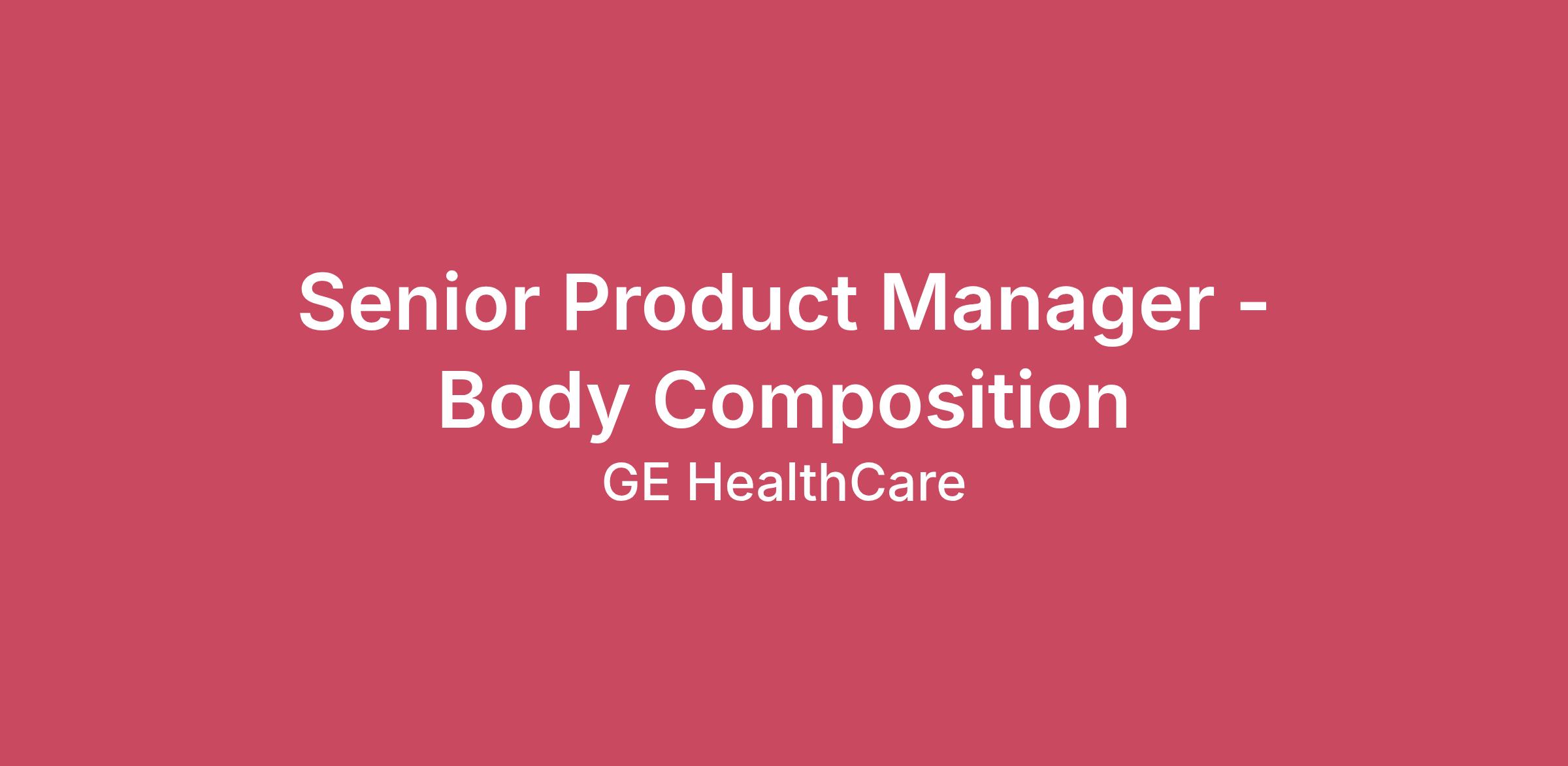 Job Description SummaryThe Senior Product Manager - Body Composition, is responsible for shaping the strategic direction, growth, and market leadership of our global Body Composition portfolio. This role focuses on advancing solutions that deliver meaningful body composition insights across clinical, health & wellness, and longevity markets—empowering providers, coaches, and consumers to drive better health outcomes throughout their wellness journey. You will translate customer needs into product strategy, identify emerging market opportunities, and lead cross-functional teams to deliver innovative solutions that accelerate adoption and business growth. This role requires a blend of strategic thinking, customer empathy, and execution excellence to ensure our solutions deliver measurable value and maintain market leadership.Job DescriptionEssential ResponsibilitiesProduct Strategy and VisionDefine the long-term vision and strategic roadmap for the Body Composition portfolio, including hardware, software, digital analytics, and service offerings.Develop a deep understanding of customer needs across clinical, wellness, and longevity segments to guide product direction and prioritization.Identify and evaluate new market opportunities—including metabolic health, obesity management, preventive care, sports performance, and wellness coaching—to drive portfolio expansion and revenue growth.Lead market segmentation, competitive analysis, and opportunity sizing to inform strategic decisions.Partner with regional commercial leaders to build and execute market development strategies that accelerate adoption in emerging and non-traditional markets.Shape the value proposition and messaging for body composition insights, emphasizing improved outcomes, personalized health journeys, and data-driven decision-making.Customer Insights & Market DevelopmentBuild strong relationships with clinicians, wellness operators, longevity centers, researchers, and key opinion leaders to gather insights and validate product concepts.Conduct customer discovery, ethnographic research, and voice-of-customer programs to uncover unmet needs and emerging trends.Develop strategies to expand body composition adoption in health & wellness, concierge medicine, corporate wellness, fitness, and digital health ecosystems.Support the creation of clinical and economic evidence demonstrating the value of body composition insights for improving patient outcomes and wellness engagement.Product DevelopmentTranslate customer insights into clear product requirements, user stories, and specifications for engineering and design teams.Lead cross-functional collaboration with engineering, clinical, regulatory, quality, manufacturing, and service teams to deliver high-quality solutions.Ensure product designs meet regulatory requirements and align with global market needs.Partner with marketing to develop positioning, messaging, sales enablement tools, and launch plans for new products and features.Product Lifecycle ManagementManage the full lifecycle of the Body Composition portfolio, including new product introductions, enhancements, and end-of-life strategies.Optimize product configurations, pricing, and packaging to maximize profitability and customer value.Business Growth & Strategic PartnershipsIdentify and evaluate partnership opportunities with digital health platforms, wellness ecosystems, AI analytics companies, and complementary technology providers.Build and maintain strategic collaborations that enhance the value of our body composition insights and expand market reach.Support commercial teams with strategic guidance, training, and tools to accelerate adoption and revenue growth.Performance MetricsDefine and track KPIs related to product adoption, customer engagement, market penetration, and financial performance.Monitor competitive dynamics and adjust strategy to maintain a market leadership position.Qualifications/RequirementsBachelor’s Degree in Marketing, Engineering, Business Administration, Life Sciences, or related field.Minimum of 10 years of experience in product management, product marketing, medical devices, digital health, wellness technology, or related fields.Experience working in regulated healthcare environments or adjacent wellness/fitness markets.Team oriented with proven ability to work well with global and cross-functional teamsStrong communication and interpersonal skills, with the ability to collaborate across technical and non-technical stakeholders.Excellent project management and organizational skills.Must be legally authorized to work in the United States full-time.Desired CharacteristicsMBA or Master’s degree in Marketing, Business Administration, or related field.Experience in body composition, metabolic health, digital health, or wellness technology.Strong understanding of body composition measurement technologies.Customer-facing experience in sales, clinical applications, marketing, or product commercialization.Ability to thrive in a fast-paced, evolving market with both clinical and consumer-facing dynamics.#LI-LRG1#LI-Onsite#LI-Hybrid#LI-RemoteWe will not sponsor individuals for employment visas, now or in the future, for this job opening. For U.S. based positions only, the pay range for this position is $149,600.00-$224,400.00 Annual. It is not typical for an individual to be hired at or near the top of the pay range and compensation decisions are dependent on the facts and circumstances of each case. The specific compensation offered to a candidate may be influenced by a variety of factors including skills, qualifications, experience and location. In addition, this position may also be eligible to earn performance based incentive compensation, which may include cash bonus(es) and/or long term incentives (LTI). GE HealthCare offers a competitive benefits package, including not but limited to medical, dental, vision, paid time off, a 401(k) plan with employee and company contribution opportun