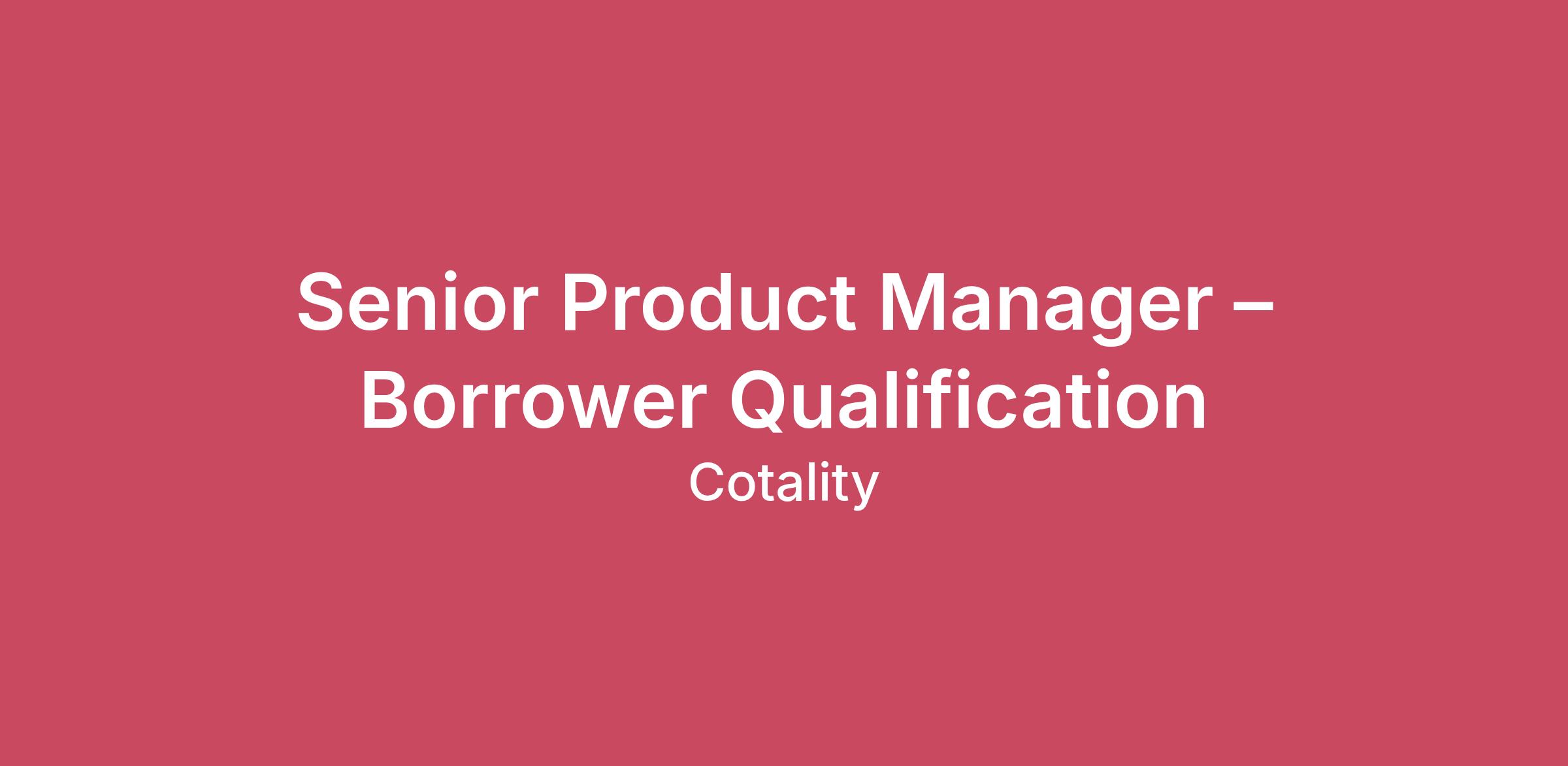 Senior Product Manager – Borrower Qualification