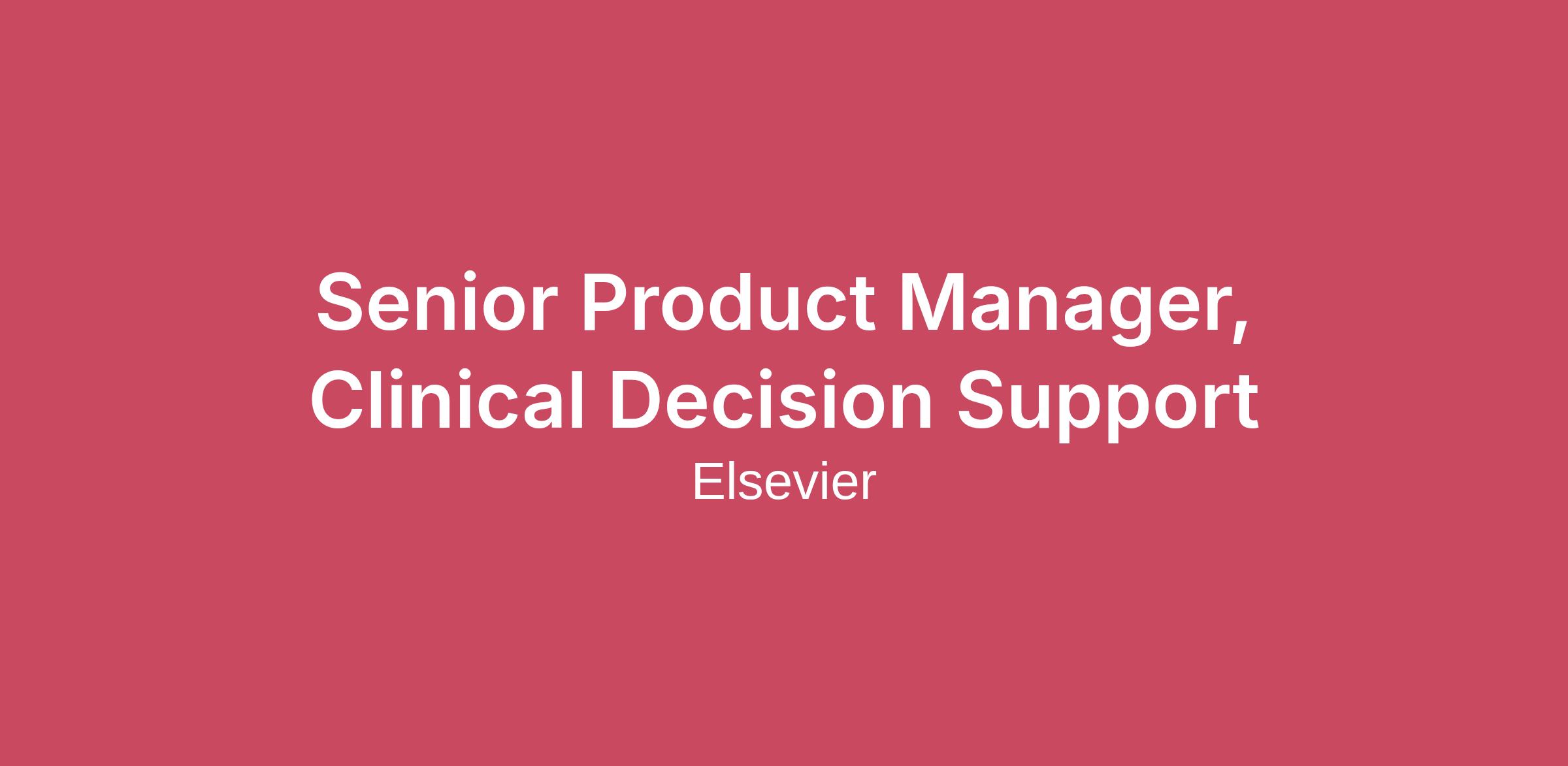 Senior Product Manager, Clinical Decision SupportAre you keen to develop your Product Management career?Would you enjoy working on our cutting-edge products?About the TeamJoin the Clinical Decision Support team at Elsevier as we transform how physicians and clinicians make decisions through trusted evidence, intelligent technology, and workflow-integrated experiences. By combining Elsevier’s world-class clinical content with modern product design, data, and responsible AI, we deliver decision support that improves confidence, efficiency, and patient outcomes at the point of care.Our two main solutions (ClinicalKey & ClinicalKey AI) are used in high-stakes clinical moments—diagnosis, treatment selection, care planning, and patient communication—where accuracy, speed, and trust are essential. This role offers the opportunity to shape the future of clinical decision support across web, mobile, and integrated healthcare workflows.About the RoleWe are seeking a Senior Product Manager, Clinical Decision Support to help define the vision, strategy, and delivery of decision support capabilities for physicians and clinicians. Reporting to senior product leadership, you will own a meaningful portion of the CDS roadmap (Products: ClinicalKey & ClinicalKey AI) and work closely with peers across the Clinical Solutions portfolio.You will translate complex clinical needs into actionable, workflow-aligned product experiences—balancing evidence rigor, usability, technical feasibility, and commercial impact. This role requires strong product judgment, comfort operating in regulated environments, and close collaboration with clinicians, engineers, designers, and data partners.ResponsibilitiesDefining and own a portion (ClinicalKey & ClinicalKey AI) of the Clinical Decision Support product roadmap, aligned to strategic priorities and customer needs.Collaborating with product leadership to shape vision and strategy, informed by customer insights, usage data, and market dynamics.Translating complex clinical problems into clear, actionable product requirements that support confident decision-making at the point of care.Conducting hands-on user discovery and concept testing with physicians and clinicians to validate unmet needs and inform prioritization.Partnering with engineering, data science, design, clinical, and commercial teams to deliver high-quality solutions from concept through launch.Defining key success metrics and monitor performance across adoption, engagement, and workflow impact, using data to guide iteration.Supporting the responsible application of AI within clinical decision support, ensuring transparency, safety, and trust in all experiences.Ensuring solutions meet regulatory, clinical, and quality standards while remaining practical and usable in real-world clinical environments.RequirementsHave 6+ years of product management experience, including ownership of complex SaaS or B2B products from strategy through delivery.Experience working on healthcare, clinical software, decision support, or regulated technology products strongly preferred.Proven ability to manage a product or major capability end-to-end, including roadmap definition, prioritization, delivery, and post-launch optimization.Proven technical fluency, with the ability to collaborate effectively with engineering and data science teams.Demonstrated experience using customer research, experimentation, and analytics to inform product decisions.Experience defining and tracking product metrics across adoption, engagement, and quality.Have communication and stakeholder-management skills, with the ability to align clinical, technical, and commercial perspectives.Have a bachelor’s or Master’s degree in a relevant discipline (e.g., Health Sciences, Computer Science, Product Design, Health Informatics, or Business).Work in a Way That Works for YouWe promote a healthy work/life balance across the organization. With flexible working arrangements, wellbeing initiatives, and supportive policies, we help you succeed both professionally and personally.Working for YouAt Elsevier, we know that your wellbeing and happiness are key to a long and successful career. Benefits include:Comprehensive medical, dental, and vision coverage401(k) with company match and Employee Share Purchase PlanWellness programs, mental health resources, and generous time-off policiesFamily benefits including parental leave, adoption, and caregiving supportShort- and long-term disability, life, and supplemental insurance optionsPaid time for volunteering and participation in Employee Resource GroupsAbout ElsevierA global leader in information and analytics, Elsevier helps researchers and healthcare professionals advance science and improve health outcomes for the benefit of society. By combining trusted content, data, and technology, we support exceptional healthcare, education, and research worldwide. U.S. National Base Pay Range: $104,900 - $174,700. Geographic differentials may apply in some locations to better reflect local market rates. This job is eligible for an annual incentive bonus. We know your well-being and happiness are key to a long and successful career. We are delighted to offer country specific benefits. Click here to access benefits specific to your location.We are committed to providing a fair and accessible hiring process. If you have a disability or other need that requires accommodation or adjustment, please let us know by completing our Applicant Request Support Form or please contact 1-855-833-5120.Criminals may pose as recruiters asking for money or personal information. We never request money or banking details from job applicants. Learn more about spotting and avoiding scams here.Please read our Candidate Privacy Policy.We are an equal opportunity employer: qualified applicants are considered for and treated during employment without regard to race, color, creed, religion, sex, national origin, citizenship status, disability status, 