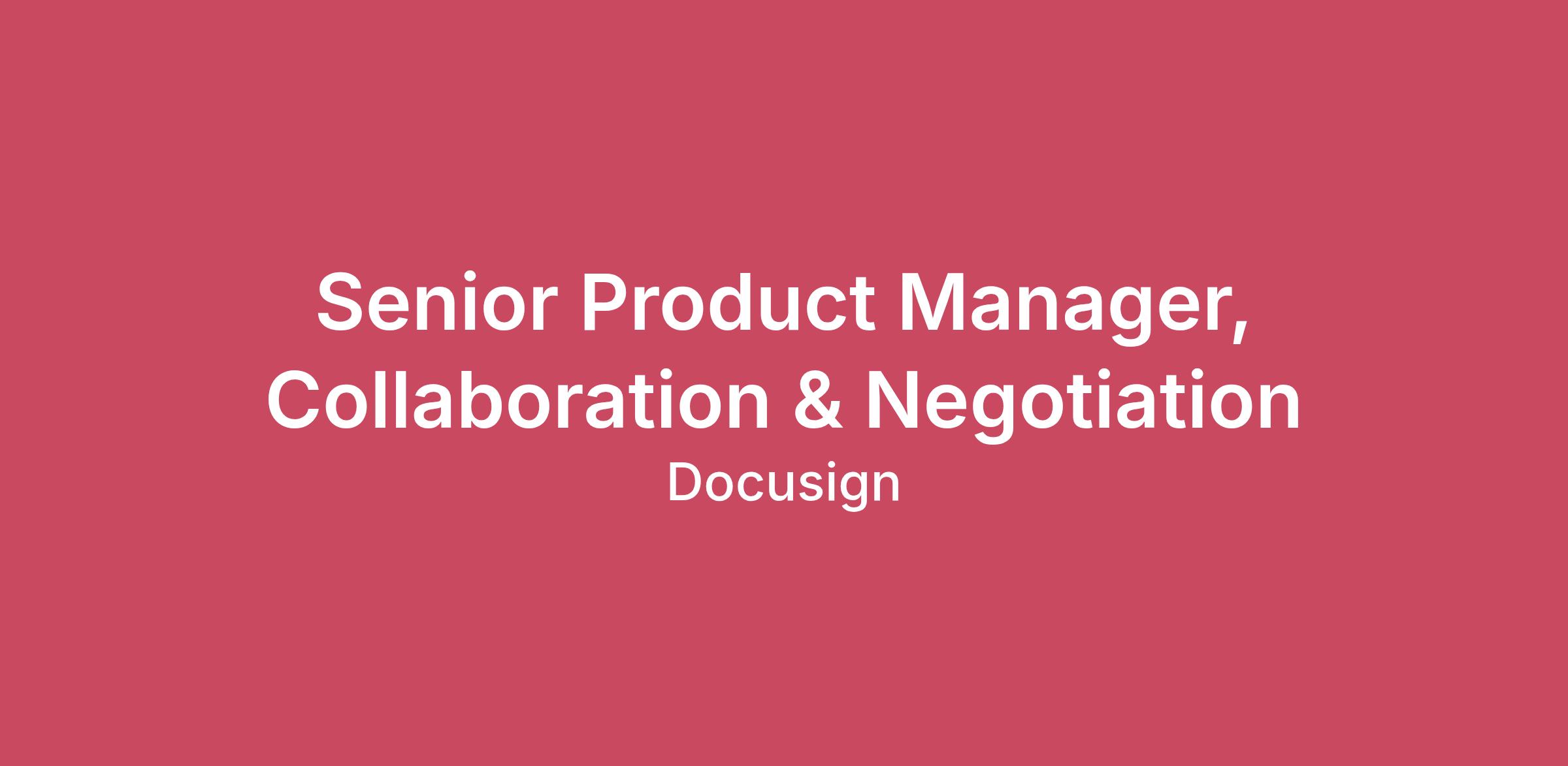 Company Overview Docusign brings agreements to life. Over 1.5 million customers and more than a billion people in over 180 countries use Docusign solutions to accelerate the process of doing business and simplify people’s lives. With intelligent agreement management, Docusign unleashes business-critical data that is trapped inside of documents. Until now, these were disconnected from business systems of record, costing businesses time, money, and opportunity. Using Docusign’s Intelligent Agreement Management platform, companies can create, commit, and manage agreements with solutions created by the #1 company in e-signature and contract lifecycle management (CLM). What you'll do As Senior Product Manager on the Collaboration & Negotiation team, you will shape world-class presignature experiences across Docusign IAM, including within Agreement Desk, CLM, and AI-Assisted Review, that help Legal, Procurement, and Finance teams (and their business partners) move agreements forward with speed and confidence. You will help define and deliver experiences that blend great UX with automation and the latest AI technology to augment human work and delight our customers. You will ship innovative agreement interaction patterns that enable cross-functional collaboration, scalable negotiation, and the elimination of tedious work while preservinghuman judgment, auditability, and trust. You will support the product lifecycle end-to-end, from initial concept through launch, adoption, and ongoing optimization and scaling. You will partner closely with Design and Engineering to deliver end-to-end customer outcomes, and work cross-functionally with go-to-market teams to launch and scale adoption. This position is an individual contributor role reporting to the Director of Product Management. ResponsibilityBuild product plans that drive end-to-end use cases that support the goals of Collaboration & Negotiation and Intelligent Agreement ManagementDefine and effectively communicate product goals and requirements, and work cross-functionally withDesign and Engineering to implement solutionsSet priorities and make tradeoffs, balancing short-term execution with long-term visionUnderstand the most heavily used tools among our customers and key personas within companies. Be an expert and champion of these users' needs and goals. Work directly with customers to identify product opportunities and gapsDefine key business metrics and goals, and track themTranslate customer feedback, market and competitive analysis, and usage data into usable, high-value end-user experiencesPartner with business stakeholders to drive adoption, go-to-market strategies, and customer success initiatives Job Designation Hybrid: Employee divides their time between in-office and remote work. Access to an office location is required. (Frequency: Minimum 2 days per week; may vary by team but will be weekly in-office expectation) Positions at Docusign are assigned a job designation of either In Office, Hybrid or Remote and are specific to the role/job. Preferred job designations are not guaranteed when changing positions within Docusign. Docusign reserves the right to change a position's job designation depending on business needs and as permitted by local law. What you bring Basic8+ years of related work experienceExperience shipping highly used products with strong UX and measurable outcomesExperience working cross-functionally with Product Management, Design, Engineering, Operations, Program Management, Marketing, Sales, and Customer SupportExperience articulatinge problem spaces, product decisions, and underlying rationalePreferredStrong decision-making skills when faced with ambiguous situations without perfect dataExcellent written and verbal communication and stakeholder management skillsStrong UX interaction design instincts for working with documents or collaborative toolsExperience directly engaging with and/or managing contracts throughout their lifecycle, from creation and negotiation to execution and analysisExperience with legal, sales, or procurement-focused software productsExperience with AI/ML products, agentic systems, or enterprise automationMBA, J.D., Computer Science, AI, or related field, or equivalent experience Wage Transparency Pay for this position is based on a number of factors including geographic location and may vary depending on job-related knowledge, skills, and experience. Based on applicable legislation, the below details pay ranges in the following locations: Washington, Maryland, New Jersey and New York (including NYC metro area): $133,800.00 - $197,750.00 base salary This role is also eligible for the following:Bonus: Sales personnel are eligible for variable incentive pay dependent on their achievement of pre-established sales goals. Non-Sales roles are eligible for a company bonus plan, which is calculated as a percentage of eligible wages and dependent on company performance.Stock: This role is eligible to receive Restricted Stock Units (RSUs). Global benefits provide options for the following:Paid Time Off: earned time off, as well as paid company holidays based on regionPaid Parental Leave: take up to six months off with your child after birth, adoption or foster care placementFull Health Benefits Plans: options for 100% employer paid and minimum employee contribution health plans from day one of employmentRetirement Plans: select retirement and pension programs with potential for employer contributionsLearning and Development: options for coaching, online courses and education reimbursementsCompassionate Care Leave: paid time off following the loss of a loved one and other life-changing events Life at DocuSign Working hereDocusign is committed to building trust and making the world more agreeable for our employees, customers and the communities in which we live and work. You can count on us to listen, be honest, and try our best to do what’s right, every day. At Docusign, everything is equal. We 