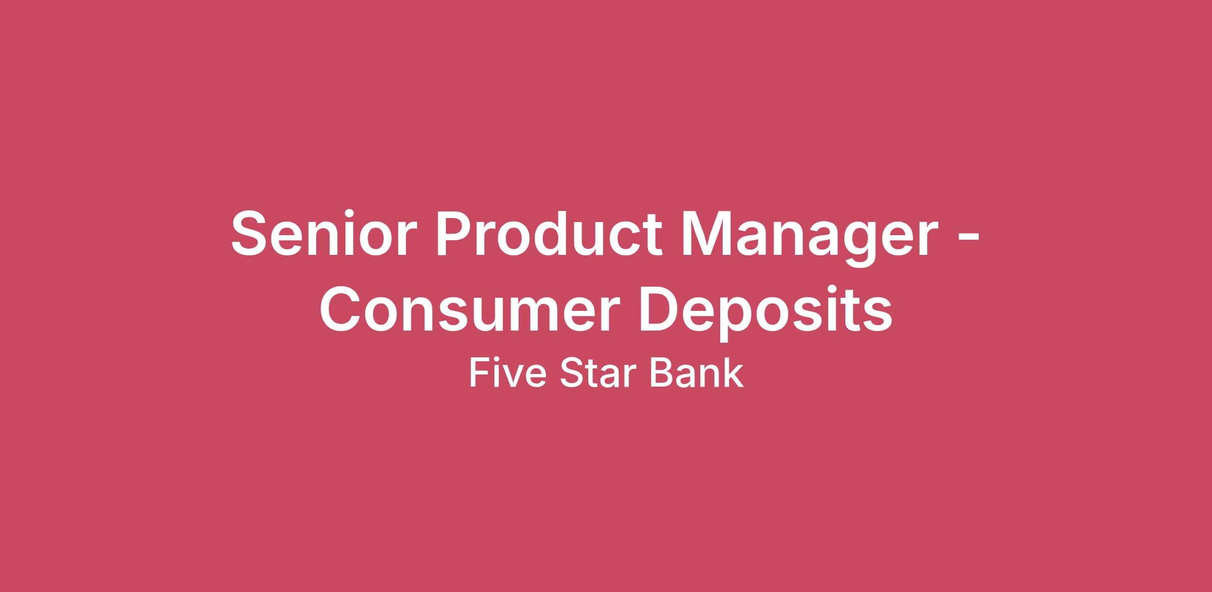 Purpose: The Senior Product Manager of Consumer Deposits is responsible for the development, design, pricing and management of our Consumer Deposit product set. This includes reporting and insights related to activity, pricing, profitability, customer growth and product mix within their portfolio of focus. Additionally, the Senior Product Manager will provide continued evaluation and recommendation of new product features/functionality and process enhancements to help us meet customer needs, enterprise goals and remain competitive. The Senior Product Manager partners with key stakeholders including line of business leadership, Finance, Marketing, Risk, Operations, Technology and others on the concept, build and delivery of new products, as well as changes to existing products – all in support of a positive customer experience, sound product governance and successful outcomes. This includes engaging with our governance bodies, such as New Product Approval and ALCO, and adhering to all processes and procedures related to change management. This role supervises the Deposit Product Analyst and directs their workflow to deliver the appropriate reporting, analysis and insights to manage the product portfolio. The Senior Product Manager will also work closely with the rest of the Product team and provide counsel and support as needed to teammates with other product portfolios. Essential Functions:Product Strategy: Maintain a roadmap for the product portfolio that aligns with enterprise objectives. This includes understanding market trends, customer needs, and the competitive landscape. Able to articulate how our products fit into the broader strategy of the bank and address specific client segments.Product Development and Management: Responsible for overseeing the development and enhancement of Consumer Deposit products. This involves working closely with Operations, Technology, Line of Business and Compliance to ensure that the products are user-friendly and can be successfully deployed within our environment.Analysis and Insights: Conduct market research and gather customer feedback to understand the needs and pain points of clients. Develop KPIs and perform user research to inform decisions about product development, marketing, and positioning.Regulatory Compliance: Work with stakeholder to ensure that product design complies with relevant laws and regulations. Adhere to change management processes, including following all required steps and obtaining all necessary approvals. This includes staying updated on changes in the banking regulatory environment and working with legal and compliance teams to navigate these complexities. This also includes taking a leading role in facilitating agreements and disclosures related to product launches and changes.Financial Management: Help manage the budget for product development and assist with forecasting and analyzing the financial performance of the product portfolio. Ensure that the products are profitable and contribute positively to the bank's bottom line.Cross-functional Collaboration: The role requires collaboration with various departments within the bank such as marketing, compliance, risk management, operations, and business leaders. The Senior Product Manager needs to ensure that all teams are aligned with the product strategy and have the necessary tools and information to effectively sell and support the products. Demonstrate the standards and principles of the Five Star Bank experience in every interaction with internal and external customers, associates, and stakeholders. Incorporate the high-performance behaviors of teamwork, leading by example, and service in every facet of work.Sales, Marketing and Communication Support: Provide support to Marketing, Sales and Communications to ensure effective outreach, promotion and change communications for product launches or changes. This could involve training sales teams, procedures, user guides, fact sheets, FAQ’s, sales documents, agreements, and customer election forms.Customer Experience and Service: Ensure that the product offers a high-quality customer experience. This includes keeping abreast of the customer service touch points related to the product, addressing any issues or feedback, and continuously seeking ways to enhance customer satisfaction.Product Lifecycle Management: Responsible for managing the entire lifecycle of each product, from inception to retirement. This includes making decisions about when to update, enhance, or discontinue products.SME: Serves as a product subject matter expert for our Consumer Deposit product set. Job Related Qualifications:Required:Education: Bachelor’s Degree in Business Administration, Finance, Marketing or related field Prior Experience: 7+ years Product Management, or a combination of Consumer Banking experience in Banker, Marketing, or Customer Experience functions.Licenses or Accreditation: N/A -OR- Preferred:Education: Master’s DegreePrior Experience: 10+ years’ experience in Consumer Banking Product Management, including roles supporting deposit products, managing vendor relationships, and developing product pricing strategy. Licenses or Accreditation: N/A Competencies:Product Competency: Embraces the role of a product manager in a multi-stakeholder ecosystem with a demonstrable understanding of product, pricing, placement, and promotion. Has demonstrated understanding of Consumer Deposit products and services, including digital banking features and technologies.Analytical ability to interpret data and present it in a meaningful and easily understood form. Work extensively with spreadsheets to analyze financial data, predict future costs, revenue and profitability with support from internal finance team.Excellent written and verbal communication skills. Able to tailor communication to unique audiences at all levels of the organization, as well as with external vendors.Excellent project management and collaboration skills. Ability
