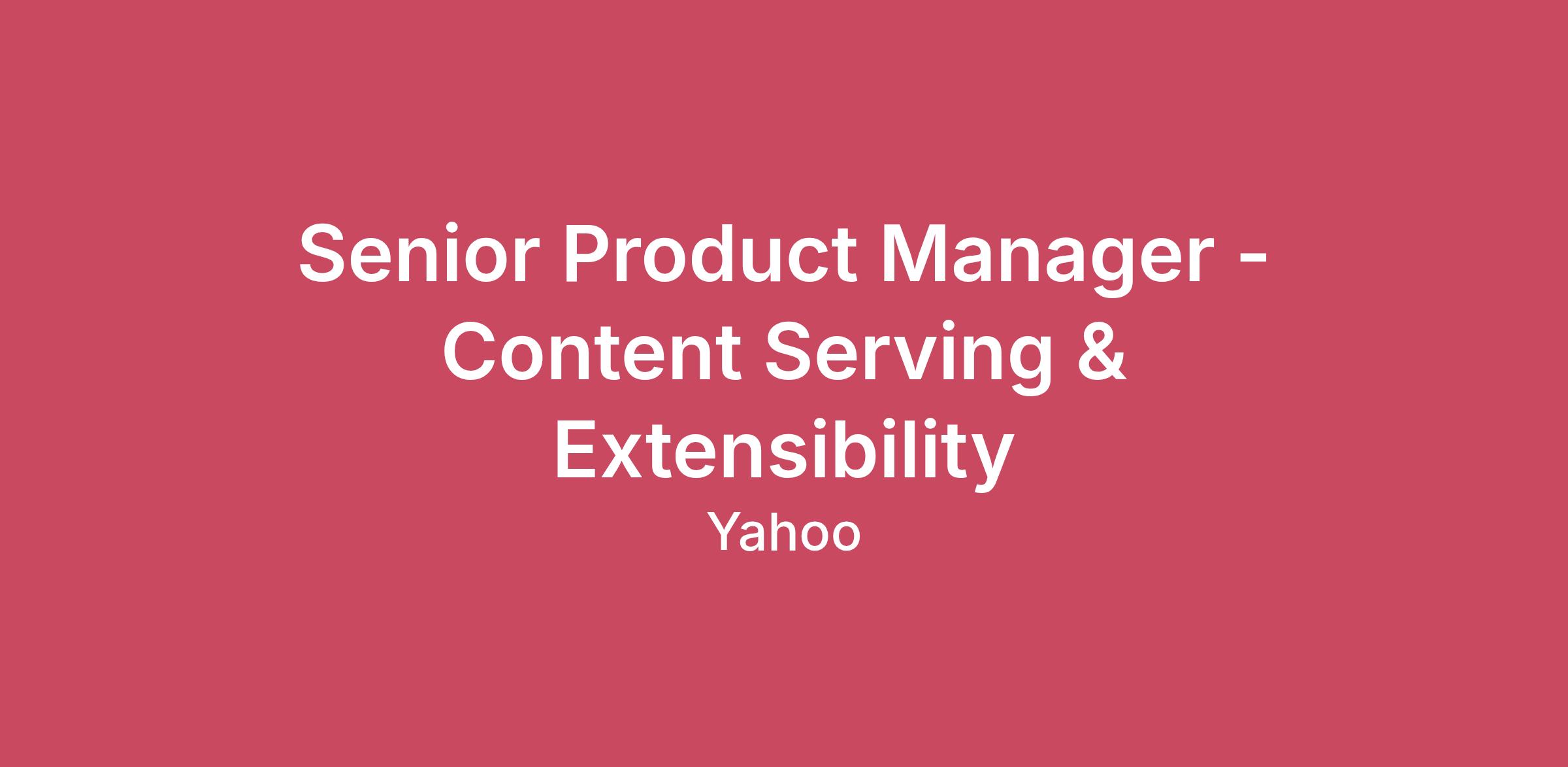 Yahoo serves as a trusted guide for hundreds of millions of people globally, helping them achieve their goals online through our portfolio of iconic products. For advertisers, Yahoo Advertising offers omnichannel solutions and powerful data to engage with our brands and deliver results.Yahoo’s Media Platform serves as the foundation for publishing and distributing content on Yahoo News, Sports, Finance, Shopping, and more. Our platform incorporates an extensible content management system, partner content ingestion, serving APIs, a federated API gateway, recommendation systems, shared front-end components, community features, and much more.About the RoleThe Media Platform’s Content Management & Serving group is seeking a visionary and technical Senior Product Manager to own the strategy and execution for Yahoo’s core content serving and publishing platform’s feature extensibility.You will be the product leader for evolving developer-facing infrastructure, most notably a GraphQL-based content serving API, a GraphQL-based API gateway for data federation, and our content management system’s feature extension framework used by distributed teams to execute on their content product roadmaps.This role is critical to enabling speed, quality, and ownership for all of Yahoo's vertical media teams and external partners. You will define the future of content extensibility, ensuring the platform can adapt and scale with the evolving needs of a global, multi-brand media organization.Your Day-to-Day:Own the end-to-end product strategy and roadmap for Content Serving & Extensibility, aligning with the Media Platform's technical vision and business impact goals.Drive the growth and improvement of core content infrastructure products, with a primary focus on the Lightyear CMS Network API (GraphQL) and the Nexus Content Gateway (Apollo GraphQL) used for serving news content, live sports stats, finance data, weather forecasts, and commerce products across Yahoo's properties.Architect and drive extensibility across Lightyear CMS and the Content Gateway, including developing models for formal extensions to foster vertical team ownership, velocity, and support of their components.Lead the initiative to enhance Content Management & Serving's collaboration model with distributed teams, including establishing best practices, creating world-class documentation, and fostering internal adoption.Partner closely with engineering, architecture, and other product teams to ensure the Content Gateway and Network API meet performance, reliability, and security standards at massive scale.Define and track KPIs around API performance, developer satisfaction, adoption of extensibility models, and time-to-market for vertical teams.Champion a product-led approach to developer tooling and relations for content product teams.What Are We Looking For?5+ years of Product Management experience in platform, developer tools, or large-scale content infrastructure, with a preference for publishing industry experience.Demonstrated success in building, scaling, and managing APIs (especially GraphQL or REST) as a core product for internal and/or external developers.Strong understanding of content management systems (CMS) and content delivery networks (CDN) within a high-volume media or e-commerce environment.Proven experience developing platform collaboration strategies, including improving documentation, internal engagement, adoption, and contribution models.Exceptional communication skills with the ability to synthesize technical detail and strategic vision for varied audiences, from engineers to executive leadership.A strong bias for action and a proven ability to align cross-functional teams (engineering, design, operations) toward bold and measurable goals.Preferred Skills:Familiarity with concepts of microservices or component-based architectures.Experience in defining extensibility models (e.g., plugin architectures, webhooks, extension points) to support a broad ecosystem of developers.Familiarity with product management AI skills, such as rapid high-fidelity prototyping, scaffolding documentation, establishing automated workflows, and conducting business analysis.Well-grounded in data analysis for platform health, as well as KPIs related to audience engagement and advertising revenue.Exposure to large-scale distributed systems and real-time data serving.The material job duties and responsibilities of this role include those listed above as well as adhering to Yahoo policies; exercising sound judgment; working effectively, safely and inclusively with others; exhibiting trustworthiness and meeting expectations; and safeguarding business operations and brand integrity.At Yahoo, we offer flexible hybrid work options that our employees love! While most roles don’t require regular office attendance, you may occasionally be asked to attend in-person events or team sessions. You’ll always get notice to make arrangements. Your recruiter will let you know if a specific job requires regular attendance at a Yahoo office or facility. If you have any questions about how this applies to the role, just ask the recruiter!Yahoo is proud to be an equal opportunity workplace. All qualified applicants will receive consideration for employment without regard to, and will not be discriminated against based on age, race, gender, color, religion, national origin, sexual orientation, gender identity, veteran status, disability or any other protected category. Yahoo will consider for employment qualified applicants with criminal histories in a manner consistent with applicable law. Yahoo is dedicated to providing an accessible environment for all candidates during the application process and for employees during their employment. If you need accessibility assistance and/or a reasonable accommodation due to a disability, please submit a request via the Accommodation Request Form (www.yahooinc.com/careers/contact-us.html) or call +1.866.772.3182. R