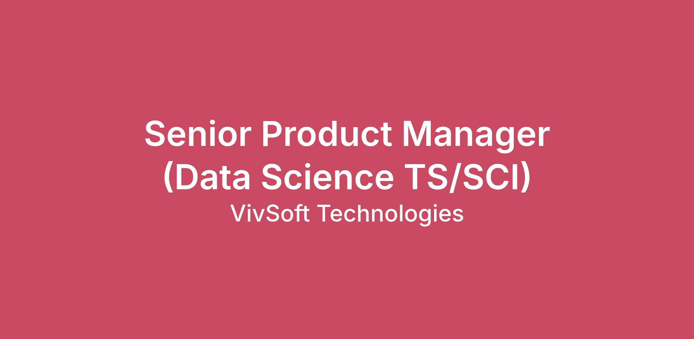 About VivSoftVivSoft is a mission-driven technology company specializing in Cloud, DevSecOps, Artificial Intelligence, and Digital Experience. We are a diverse team of innovators focused on creating open, scalable, and automated solutions that drive digital transformation in federal space. Our work culture fosters collaboration, creativity, and continuous learning.Position OverviewThe Senior Product Manager / Data Science for the NGA AI/ML Program serves at the intersection of advanced analytics, machine learning, and mission-driven product strategy. This role operates at the forefront of AI and deep learning technologies, enabling transformational outcomes within the National Geospatial-Intelligence Agency’s Digital Intelligence Environment (DIE).Key ResponsibilitiesAs a Senior Product Manager / Data Scientist on the NGA AI/ML Program, you will:Analyze large, complex datasets to identify patterns, trends, and insights that improve NGA mission capabilities.Work collaboratively within multidisciplinary teams to solve complex, interdependent analytical and operational challenges.Identify high-value data sources and automate data collection, ingestion, and mining processes.Perform preprocessing and feature engineering on structured and unstructured datasets.Translate analytical findings into actionable product insights and recommendations.Provide strategic guidance on the applicability and direction of industry-standard AI/ML solutions.Contribute specialized expertise to define near- and long-term product milestones and roadmaps.Monitor model and product performance, supporting continuous improvement and long-term planning.Evaluate organizational operational and functional baselines using data-driven and industry best-practice approaches.Participate in account strategy sessions, technical reviews, and design reviews to validate enterprise AI/ML approaches.Stay current with emerging AI/ML technologies, research, tools, lessons learned, and best practices, applying them to NGA’s mission environment.Serve as an interface between stakeholders, users, data scientists, and engineering teams.Engage directly with users to uncover underlying needs and validate analytical and product solutions.Collaborate with product managers, program managers, engineers, and external partners to shape product vision and execution.Work closely with software engineering and MLOps teams to deliver scalable, secure, and mission-ready ML solutions.Support the full product lifecycle, from concept and experimentation through deployment, evaluation, and sustainment.Communicate and advocate product and analytical insights to both technical and non-technical audiences.Represent the NGA AI/ML Program at government and industry events as needed.Required QualificationsBachelor’s degree in Computer Science, Mathematics, Engineering, Information Technology, Business, or a related discipline.Strong critical-thinking skills with the ability to support collaborative problem solving in a team-based environment.Experience working in Agile/Scrum environments; familiarity with Agile methodologies or certifications (e.g., Scrum Master).Working knowledge of multiple programming languages and statistical packages, as well as data tooling used in AI/ML environments.Experience analyzing large datasets and applying analytical methods to drive product and mission decisions.Strong analytical and problem-solving skills, with the ability to use data and metrics to inform product strategy.Minimum of 6 months of experience working in or supporting AI-related initiatives.Demonstrated adaptability and curiosity in AI, including continuous learning through research, coursework, workshops, or hands-on experimentation.Desired QualificationsMaster’s degree in Computer Science, Mathematics, Engineering, Information Technology, Business, or a related field.Relevant certifications in Product Management, Project Management, Agile, or Data Science.Experience leading or contributing to high-performing teams delivering IT or AI-enabled solutions.Deeper familiarity with AI/ML concepts, algorithms, and current industry trends.Experience working in cross-functional environments with data scientists, engineers, vendors, and military professionals.Prior experience supporting joint military, Intelligence Community, or DoD environments.Benefits:Comprehensive Medical, Dental, and Visions PlansLife InsurancePaid Time Off (Flexible/Combined PTO, Bereavement Leave, 11 Company Paid Holidays)401K Retirement Plan with employer matchProfessional Development Training ReimbursementFlexible/remote work schedule.