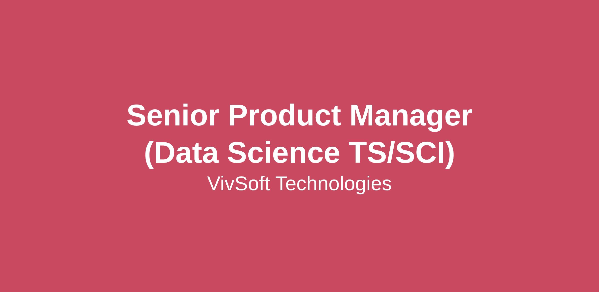 About VivSoftVivSoft is a mission-driven technology company specializing in Cloud, DevSecOps, Artificial Intelligence, and Digital Experience. We are a diverse team of innovators focused on creating open, scalable, and automated solutions that drive digital transformation in federal space. Our work culture fosters collaboration, creativity, and continuous learning.Position OverviewThe Senior Product Manager / Data Science for the NGA AI/ML Program serves at the intersection of advanced analytics, machine learning, and mission-driven product strategy. This role operates at the forefront of AI and deep learning technologies, enabling transformational outcomes within the National Geospatial-Intelligence Agency’s Digital Intelligence Environment (DIE).Key ResponsibilitiesAs a Senior Product Manager / Data Scientist on the NGA AI/ML Program, you will:Analyze large, complex datasets to identify patterns, trends, and insights that improve NGA mission capabilities.Work collaboratively within multidisciplinary teams to solve complex, interdependent analytical and operational challenges.Identify high-value data sources and automate data collection, ingestion, and mining processes.Perform preprocessing and feature engineering on structured and unstructured datasets.Translate analytical findings into actionable product insights and recommendations.Provide strategic guidance on the applicability and direction of industry-standard AI/ML solutions.Contribute specialized expertise to define near- and long-term product milestones and roadmaps.Monitor model and product performance, supporting continuous improvement and long-term planning.Evaluate organizational operational and functional baselines using data-driven and industry best-practice approaches.Participate in account strategy sessions, technical reviews, and design reviews to validate enterprise AI/ML approaches.Stay current with emerging AI/ML technologies, research, tools, lessons learned, and best practices, applying them to NGA’s mission environment.Serve as an interface between stakeholders, users, data scientists, and engineering teams.Engage directly with users to uncover underlying needs and validate analytical and product solutions.Collaborate with product managers, program managers, engineers, and external partners to shape product vision and execution.Work closely with software engineering and MLOps teams to deliver scalable, secure, and mission-ready ML solutions.Support the full product lifecycle, from concept and experimentation through deployment, evaluation, and sustainment.Communicate and advocate product and analytical insights to both technical and non-technical audiences.Represent the NGA AI/ML Program at government and industry events as needed.Required QualificationsBachelor’s degree in Computer Science, Mathematics, Engineering, Information Technology, Business, or a related discipline.Strong critical-thinking skills with the ability to support collaborative problem solving in a team-based environment.Experience working in Agile/Scrum environments; familiarity with Agile methodologies or certifications (e.g., Scrum Master).Working knowledge of multiple programming languages and statistical packages, as well as data tooling used in AI/ML environments.Experience analyzing large datasets and applying analytical methods to drive product and mission decisions.Strong analytical and problem-solving skills, with the ability to use data and metrics to inform product strategy.Minimum of 6 months of experience working in or supporting AI-related initiatives.Demonstrated adaptability and curiosity in AI, including continuous learning through research, coursework, workshops, or hands-on experimentation.Desired QualificationsMaster’s degree in Computer Science, Mathematics, Engineering, Information Technology, Business, or a related field.Relevant certifications in Product Management, Project Management, Agile, or Data Science.Experience leading or contributing to high-performing teams delivering IT or AI-enabled solutions.Deeper familiarity with AI/ML concepts, algorithms, and current industry trends.Experience working in cross-functional environments with data scientists, engineers, vendors, and military professionals.Prior experience supporting joint military, Intelligence Community, or DoD environments.Benefits:Comprehensive Medical, Dental, and Visions PlansLife InsurancePaid Time Off (Flexible/Combined PTO, Bereavement Leave, 11 Company Paid Holidays)401K Retirement Plan with employer matchProfessional Development Training ReimbursementFlexible/remote work schedule.