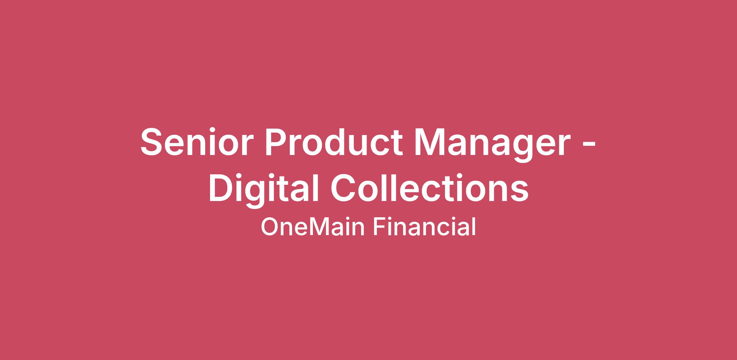 Who we are: At BrightWay (www.meetbrightway.com) we’re living our mission to improve the financial well-being of hard-working Americans. Our goal is to transform the way our customers think about and use credit cards, rewarding good behavior in ways that truly add value, while providing experiences that empower and engage, even if that means challenging industry norms.Operating as a startup and owned by OneMain Financial, one of the largest and most successful personal finance companies in the industry, we launched our digital-first suite of credit cards in 2021 and have been on a high growth, fast-track ride of fostering innovative thinking to engaging and empower our customers ever since. We continually challenge what a digital finance product can be - employing a customer-first approach indeveloping all of our products, features, or experiences. We’re not afraid to look to outside influences and create new frameworks.Our office in Charlotte, NC’s up-and-coming South End serves as our hub to connect with our distributed team mates around the country and the globe.About the role:We are looking for a Senior Product Manager to join our Servicing team, supporting our digital collections programs across our omni-channel experiences, including the BrightWay mobile app. This roll aligns with our mission to help to improve our customer’s financial lives by providing clarity and optionality to get them back on track during times of need. You’ll be charged with deeply understanding both our customer’s needs as well as the rapidly changing digital collections landscape.As a Senior Product Manager you have a proven track record of delivering awesome customer experiences and results at scale. You have a strong bias for action, and you’ll do whatever it takes to get it done. You are a strategic thinker who can propose innovate solutions to delivering against your roadmap. You mix strong data-driven focus with product intuition to challenge the boundaries of what a great product experience can do.This is a hybrid role based out of our Charlotte, North Carolina office.Your responsibilities:Manage your team’s roadmap to deliver on outputs that ladder up to your Key Results and Outcomes.Creatively solve customer’s pain pointsGain a deep understanding for our customer’s needs and pain points through data analysis, and direct user interactions.Communicate status updates, strategic risks and key dependencies, progress against objectives, and wins to your team leaders.Partner closely with cross functional team members across product, design, engineering, operations, and analytics to ensure alignment, prioritization, and delivery across launches.Your qualifications:4-6+ years experience in a product management or business analytics role.Preferably 2+ years in a face-paced environment such as a startup, fintech, etc.Experience following and contributing to a product vision and strategy, executing with a cross-functional teams.Experience with a Product Operating Model and the OKR framework.Strong written and verbal communication skills.Customer obsession and drive to deliver constant value.Demonstrated ability to autonomously solve complex problems and carry the solution end to end.Experience leading scrum teams, and proficiency writing detailed user-stories and acceptance criteria.Strong sense of ownership and accountability for your domain.Attention to detail, but focused on the big picture.Expertise with programs such as Confluence, Jira, Figma, and Microsoft Office.Who we Are:OneMain Financial (NYSE: OMF) is the leader in offering nonprime customers responsible access to credit and is dedicated to improving the financial well-being of hardworking Americans. Since 1912, we’ve looked beyond credit scores to help people get the money they need today and reach their goals for tomorrow. Our growing suite of personal loans, credit cards and other products help people borrow better and work toward a brighter future.Driven collaborators and innovators, our team thrives on transformative digital thinking, customer-first energy and flexible work arrangements that grow lives, careers and our company. At every level, we’re committed to an inclusive culture, career development and impacting the communities where we live and work. Getting people to a better place has made us a better company for over a century. There’s never been a better time to shine with OneMain.Because team members at their best means OneMain at our best, we provide opportunities and benefits that make their health and careers a priority. That’s why we’ve packed our comprehensive benefits package for full- and some part-timers with: Health and wellbeing options including medical, prescription, dental, vision, hearing, accident, hospital indemnity, and life insurances Up to 4% matching 401(k) Employee Stock Purchase Plan (10% share discount) Tuition reimbursement Paid time off (15 days’ vacation per year, plus 2 personal days, prorated based on start date) Paid sick leave as determined by state or local ordinance, prorated based on start date Paid holidays (7 days per year, based on start date) Paid volunteer time (3 days per year, prorated based on start date) OneMain Holdings, Inc. is an Equal Employment Opportunity (EEO) employer. Qualified applicants will receive consideration for employment without regard to age, ancestry, citizenship status, color, creed, culture, disability, ethnicity, gender, gender identity or expression, genetic information or history, marital status, military status, national origin, nationality, pregnancy, race, religion, sex, sexual orientation, socioeconomic status, transgender or on any other basis protected by law.