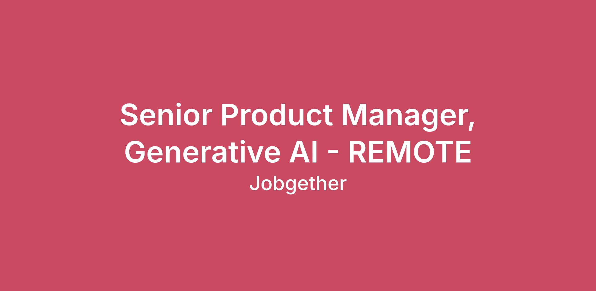 Senior Product Manager, Generative AI - REMOTE