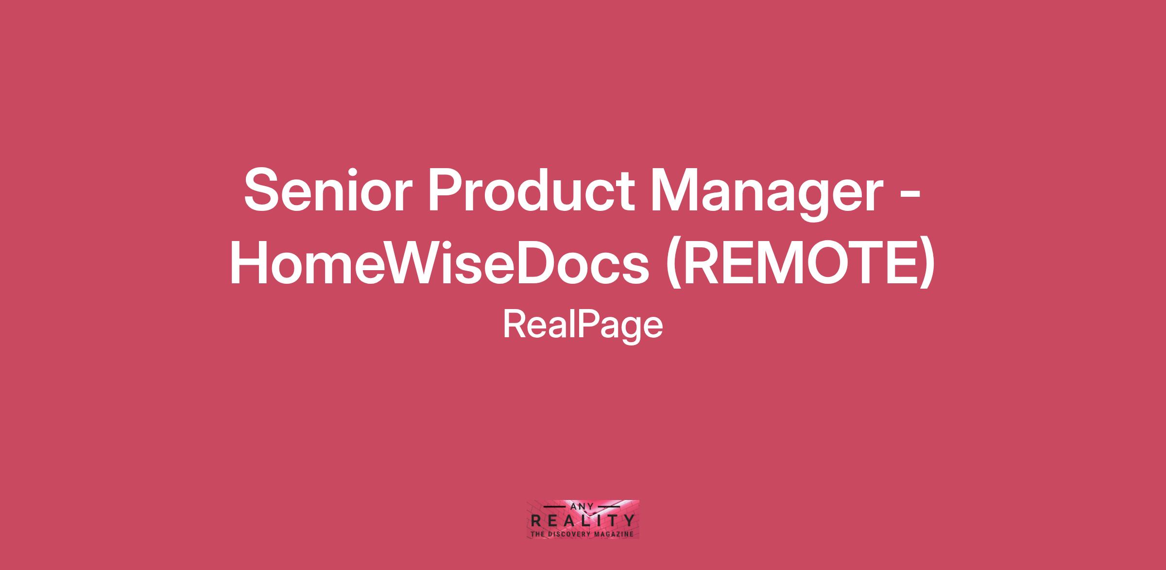 Senior Product Manager - HomeWiseDocs (REMOTE)