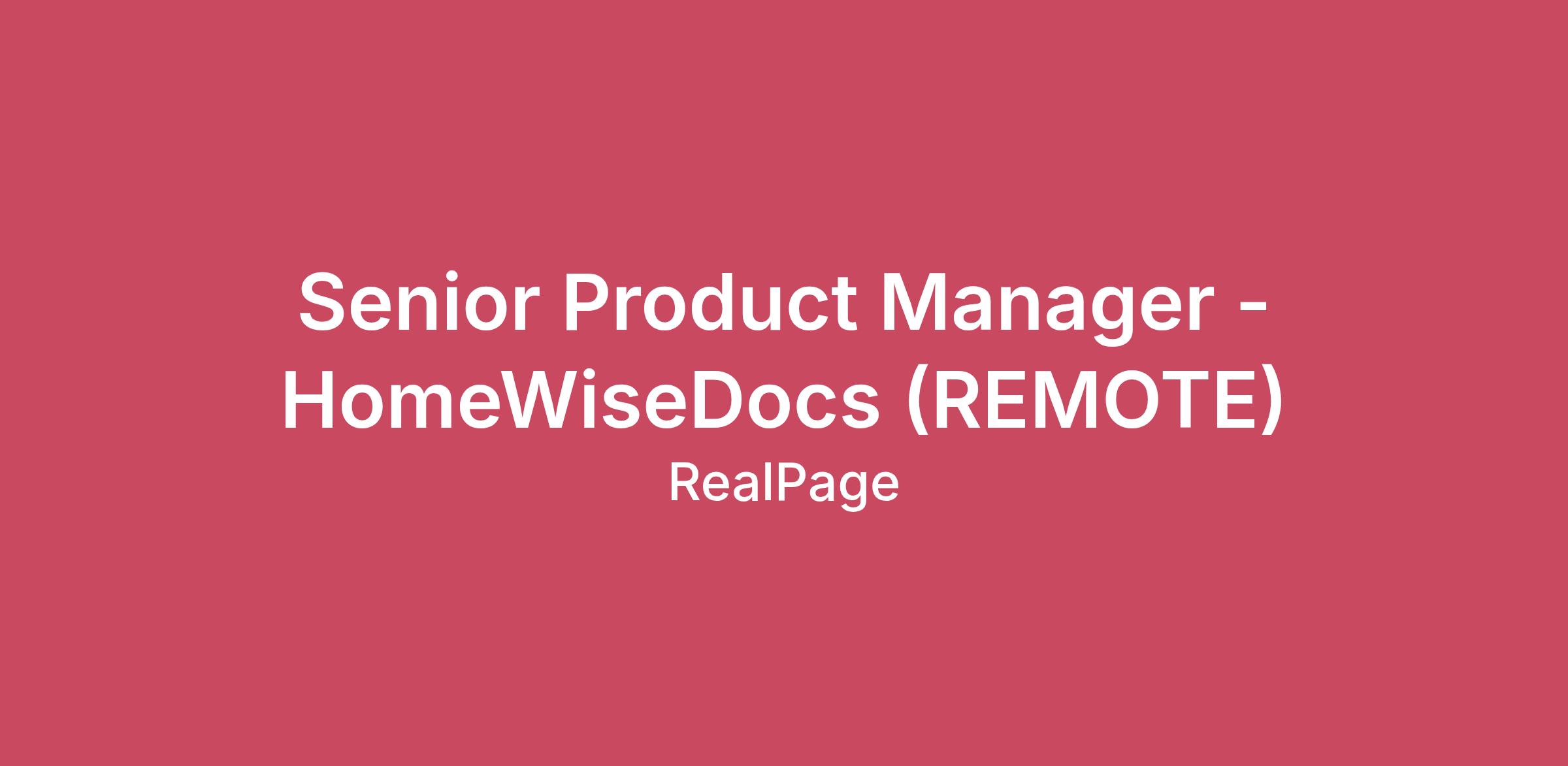 Senior Product Manager - HomeWiseDocs (REMOTE)