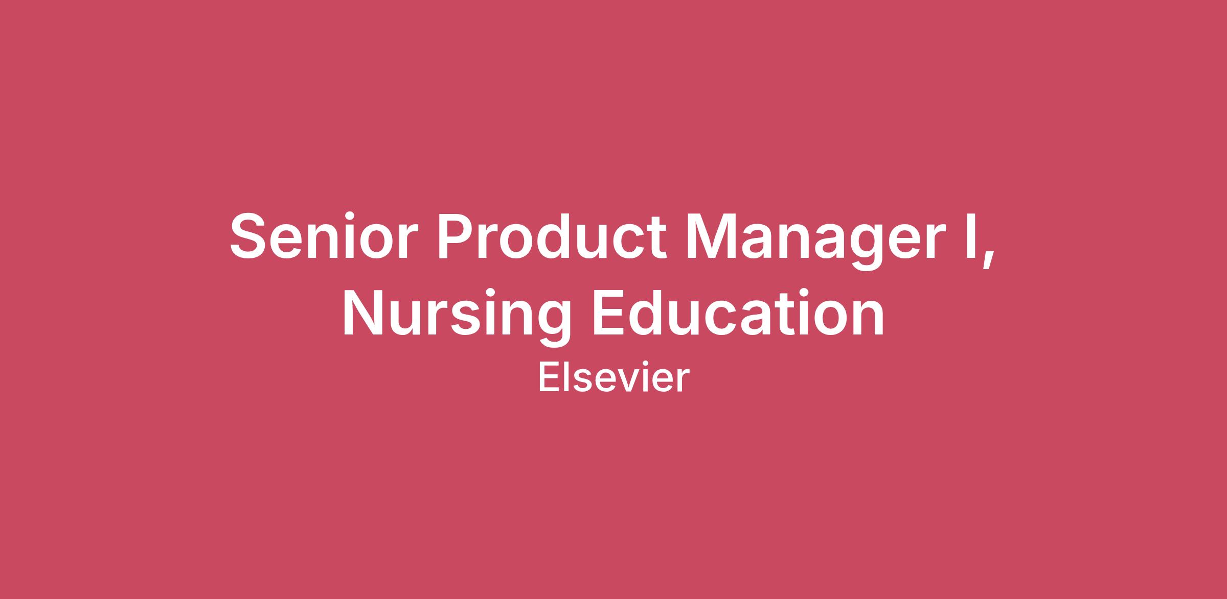Senior Product Manager I, Nursing EducationAbout the Team Join the Nurse Readiness team at Elsevier, dedicated to revolutionizing nurse education and competency management with innovative, evidence-based solutions. Our team harnesses expert insights and premier content to empower nursing professionals with the tools they need to excel at every stage of their careers. By providing tailored educational experiences and competency assessments, we support nurses in delivering exceptional patient care and meeting the highest standards of practice. Recognized by top nursing institutions and accreditation bodies, we continually update our offerings to reflect the latest in nursing standards, educational methodologies, and healthcare advancements. This role offers the opportunity to shape the future of creating engaging nursing education and professional development.About the RoleAs a Senior Product Manager on the Nurse Readiness team, you will create strategies for engaging and interactive nursing education during a pivotal growth phase. Reporting directly to the Vice President of Product, you will play a critical role within a dynamic, dedicated, and product-focused team. Your duties will involve partnering with the VP of Product to define and execute the product vision and roadmap, while crafting a strategic plan to enhance and distinguish our offerings in nurse education. You will work closely with technology, nursing, and content experts, as well as commercial strategists, to develop interactive and impactful experiences, creating excitement about learning and ensuring that nurses are equipped with the knowledge and skills necessary for exceptional patient care.ResponsibilitiesCollaborate with the VP Product on strategic vision for interactive nursing education experiences, informed by customer data and insights.Drive the execution of the strategy through a comprehensive product roadmap, working with nurse education content and product colleagues to prioritize and launch an integrated offering.Innovate to deliver exceptional value for our customers, enhancing nursing education experiences across web and mobile platforms.Partner with cross-functional teams to drive innovation and formulate new strategies that elevate the quality of our nurse education solutions.Monitor and report on key performance indicators, proactively identifying issues and providing data-driven recommendations.Utilize data and customer research to uncover opportunities, developing product plans to capitalize on them.Own product-led growth initiatives, collaborating with stakeholders across the Nurse Readiness team.Analyze qualitative and quantitative data to refine, expand, and create new functionalities for nursing education use cases on web and mobile applications. RequirementsHave 6+ years of experience delivering world class SaaS and B2B products in a high velocity environment, with 3+ years in Education Technology, Nurse education or competency management preferredBachelors or Masters degree with a preference for technical or education design subjectsHave experience as a full owner of a product or sizable feature of a complex, global productPossess prior experience releasing new products or product features to the market, from conceptualization to execution to post release managementHave experience with end-to-end product delivery, including feature delivery tradeoffs, roadmap strategy, and prioritizationPossess technical knowledge to understand the implications of product decisionsFamiliarity with self-serve product analytics and use of Excel, Tableau, Pendo or other product analytic toolsWork in a way that works for youWe promote a healthy work/life balance across the organization. We offer an appealing working prospect for our people. With numerous wellbeing initiatives, shared parental leave, study assistance and sabbaticals, we will help you meet your immediate responsibilities and your long-term goals.Working flexible hours - flexing the times when you work in the day to help you fit everything in and work when you are the most productiveWorking for you At Elsevier, we know that your wellbeing and happiness are key to a long and successful career. These are some of the benefits we are delighted to offer: Health Benefits: Comprehensive, multi-carrier program for medical, dental and vision benefitsRetirement Benefits: 401(k) with match and an Employee Share Purchase PlanWellbeing: Wellness platform with incentives, Headspace app subscription, Employee Assistance and Time-off ProgramsShort-and-Long Term Disability, Life and Accidental Death Insurance, Critical Illness, and Hospital IndemnityFamily Benefits, including bonding and family care leaves, adoption and surrogacy benefitsHealth Savings, Health Care, Dependent Care and Commuter Spending AccountsUp to two days of paid leave each to participate in Employee Resource Groups and to volunteer with your charity of choice About the Business A global leader in information and analytics, we help researchers and healthcare professionals advance science and improve health outcomes for the benefit of society. Building on our publishing heritage, we combine quality information and vast data sets with analytics to support visionary science and research, health education and interactive learning, as well as exceptional healthcare and clinical practice. At Elsevier, your work contributes to the world’s grand challenges and a more sustainable future. We harness innovative technologies to support science and healthcare to partner for a better world. U.S. National Base Pay Range: $104,900 - $174,700. Geographic differentials may apply in some locations to better reflect local market rates. This job is eligible for an annual incentive bonus. We know your well-being and happiness are key to a long and successful career. We are delighted to offer country specific benefits. Click here to access benefits specific to your location.We are committed to providing a fair and accessib