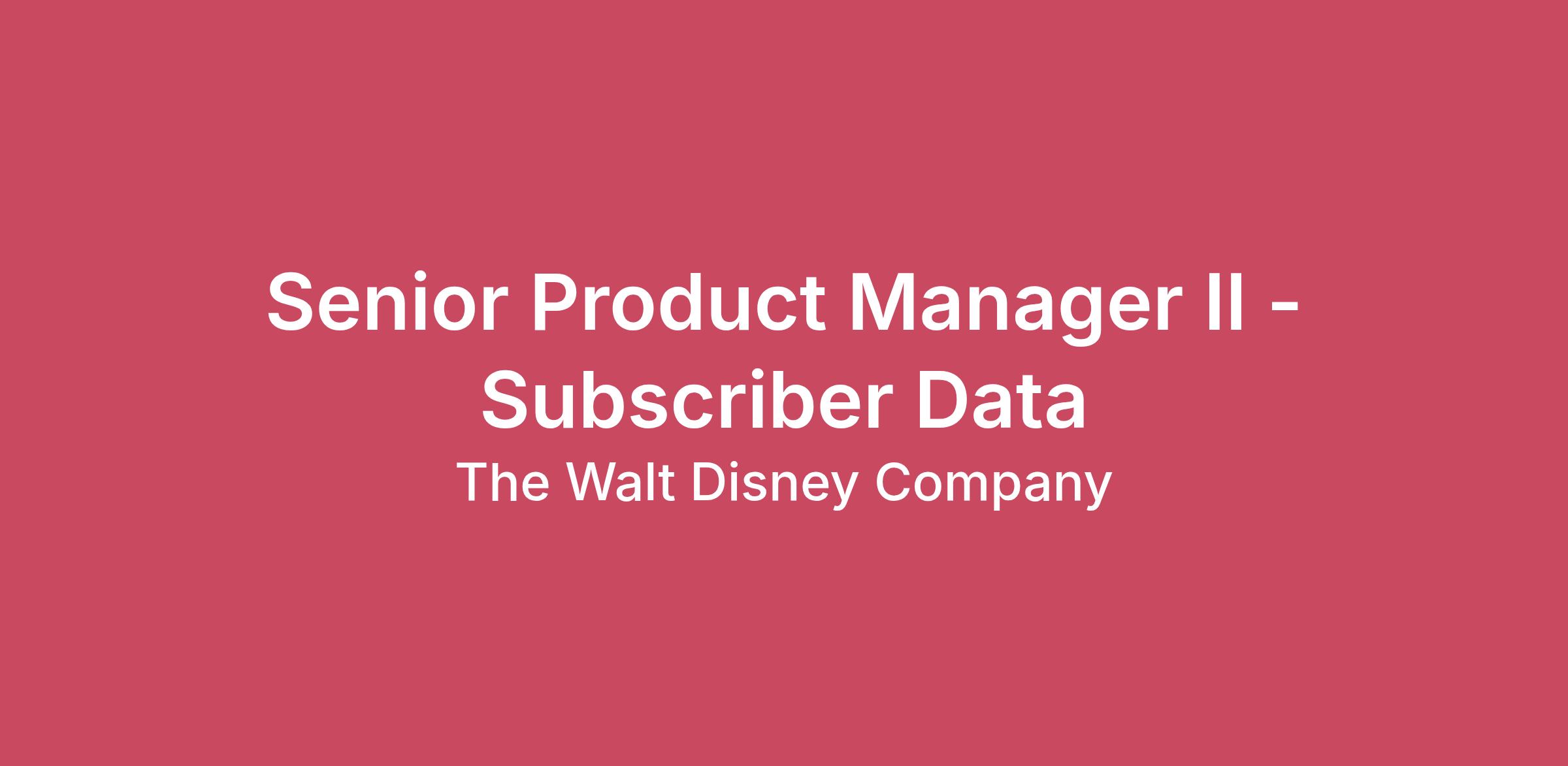 Job Posting Title:Senior Product Manager II - Subscriber DataReq ID:10135859Job Description:About Disney Entertainment and ESPN Product & TechnologyTechnology is at the heart of Disney’s past, present, and future. Disney Entertainment and ESPN Product & Technology (DEEP&T) is a global organization of engineers, product developers, designers, technologists, data scientists, and more – all working to build and advance the technological backbone for Disney’s media business globally. The team marries technology with creativity to build world-class products, enhance storytelling, and drive velocity, innovation, and scalability for our businesses. We are Storytellers and Innovators. Creators and Builders. Entertainers and Engineers. We work with every part of The Walt Disney Company’s media portfolio to advance the technological foundation and consumer media touch points serving millions of people around the world. Here are a few reasons why we think you’d love working here: Building the future of Disney’s media: Our Technologists are designing and building the products and platforms that will power our media, advertising, and distribution businesses for years to come. Reach, Scale & Impact: More than ever, Disney’s technology and products serve as a signature doorway for fans' connections with the company’s brands and stories. Disney+. Hulu. ESPN. ABC. ABC News…and many more. These products and brands – and the unmatched stories, storytellers, and events they carry – matter to millions of people globally. Innovation: We develop and implement groundbreaking products and techniques that shape industry norms, and solve complex and distinctive technical problems. Commerce, Data & Identity (CDI) provides the core product management functions for areas crucial to Disney’s media businesses. These include initiatives and products that power digital commerce, identity, and growth, as well as those that reach uniquely across The Walt Disney Company enterprise, such as messaging and privacy, among others. Additionally, it is responsible for the data engineering, science, and products for Disney Entertainment & ESPN, along with their interconnection with other parts of The Walt Disney Company. About the RoleWe are seeking a Senior Product Manager II in the Subscriber Data Product team, which sits within the Commerce, Data & Identity (CDI) organization. This team develops core subscriber data products and solutions that fuel the commerce engine — driving growth, enabling monetization at scale, and guiding key business decisions through high quality data. This role will partner closely with engineering, data science, product, and business stakeholders to define and execute a roadmap that delivers high-impact data products. This role requires a strategic thinker with deep data expertise, capable of translating ambiguous business needs into actionable product roadmaps while balancing scalability, performance, and privacy compliance. Join us in delivering scalable, high-quality data solutions that power world-class entertainment monetization and experiences.Key ResponsibilitiesOwn and define the vision, strategy, and roadmap, ensuring alignment with business goals and regulatory requirementsCollaborate cross-functionally with Engineering, Data Architecture, Data Analytics, Privacy, Governance, and Business Teams to build scalable, compliant, and highly available data productsOversee stakeholder engagement, prioritizing intake requests, defining requirements, and ensuring timely, compliant data deliveryDevelop and maintain clear product documentation, including detailed product briefs, roadmaps, and success metricsIdentify and mitigate risks, addressing key blockers and dependencies across teamsChampion data governance and privacy compliance, ensuring adherence to evolving regulatory landscapes while maintaining business agilityBasic Qualifications7+ years of experience in data product management, platform development, data engineering, or related fieldsProven ability to manage cross-functional engineering teams and vendor relationshipsAbility to translate complex business needs into clear technical requirements and deliver scalable, high-impact data solutionsStrong analytical mindset with the ability to measure success through data-driven insightsBachelor's degree requiredPreferred QualificationsUndergraduate Degree in Engineering, Math, Science, Economics, or equivalentAdvance CS degree or MBA is a plusShown experience in video streaming, OTT, and subscription based servicesExperience working with data ingestion APIs, warehouse infrastructure, and data sharing technologiesFamiliarity with B2B2C partnerships or commerce/growth productFamiliarity with big data storage, processing technologies, and modeling techniques (Druid, Kafka, Snowflake, Redshift, star schema, OLAP, etc.Additional Information#DISNEYTECH#CDIThe hiring range for this position in Santa Monica, CA is $152,200 - $204,100 per year, in San Francisco, CA is $166,800 - $223,600 a year, and in NYC/Seattle is $159,500 - $213,900 a year. The base pay actually offered will take into account internal equity and also may vary depending on the candidate’s geographic region, job-related knowledge, skills, and experience among other factors. A bonus and/or long-term incentive units may be provided as part of the compensation package, in addition to the full range of medical, financial, and/or other benefits, dependent on the level and position offered.Job Posting Segment:Commerce, Data & IdentityJob Posting Primary Business:CGI - Data ProductPrimary Job Posting Category:Product ManagementEmployment Type:Full timePrimary City, State, Region, Postal Code:Santa Monica, CA, USAAlternate City, State, Region, Postal Code:USA - CA - Market St, USA - NY - 7 Hudson Square, USA - WA - 925 4th AveDate Posted:2025-11-05