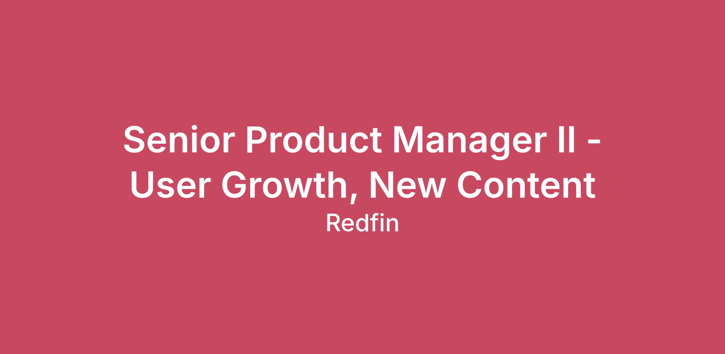 This position is a hybrid role requiring employees to work from our headquarters location in Seattle, WA every Tuesday and Wednesday, and remote all other days.Redfin is revolutionizing the $75 billion real estate industry. We use data, beautiful software, and innovative design to put customers first at every step in the home-ownership, renting, and financing process. The User Growth team plays an integral part of the overall Redfin’s business – traffic growth. We drive deeper engagement from Redfin’s 50M+ unique monthly visitors through best-in-class home browsing and information consumption experience. Deeper connection with our visitors result in more contacts for Redfin real estate agents to buy or sell their home or more contacts for Rocket Mortgage bankers to purchase or refinance loans. We look for opportunities to generate richer and unique contents to drive more user growth on Redfin.com. We evaluate and deliver innovative contents to Redfin users on key pages, like Listing Detail Page, by creating proprietary data or leveraging third party data so that Redfin visitors can have a more holistic understanding of the property with stronger engagement. Since these opportunities are so fundamental to Refin’s overall success, this role will collaborate closely with a number of teams across Redfin and third party content partners. That’s where you come in. We’re looking for a talented Senior Product Manager II to chart our path forward to drive more user growth. Your vision and solutions will directly and significantly impact Redfin’s profitability. You’ll be in charge of growing more new and return visits on Redfin, balancing between iterative experiments and bigger bets with many layers of risk and ambiguity. The RoleBuild a vision and product strategy, while driving a cross functional and leadership alignment. Forge roadmaps, requirements, and product designs, setting concrete goals to measure team success.Work with stakeholders across businesses to build a cohesive experience, navigate tradeoffs, and drive business results.Evaluate various third party vendors, negotiate contract terms, and deliver new contents on our site and app.Define and execute on the product roadmap for your team, rallying a cross-functional team of engineers, designers, marketers, and analysts to ship world-class products.Influence engineering leaders on technical directions that have strategic impact.Dive deep into data with analysts to offer critical insights and execute on product improvements.Effectively communicate progress, outcomes, and recommendations to executives through clearly written narratives and reviews.Improve the company’s best practices and mechanisms as a senior Product leader on the team.Who You ArePassionate about Redfin's mission.8+ years of Product Management experience working with a team to build and deliver new products or experiences, preferably with an MBA degree.Preferably with previous experience in evaluating third party vendors, negotiating terms, and executing data integration with third party vendors, for the end user facing featuresAble to influence executives and entry-level employees alike across multiple functions.A Learner. You’ve demonstrated an ability to quickly develop subject matter expertise in a complex area.Someone with deep customer empathy. You can listen to users, understand their key problems, and develop intuitive solutions to these problems.You have a track record of working on innovative problems that are ambiguous at the outset, simplifying complexity into something actionable.Great communicator. You can distill a challenging problem into its essential elements, and clearly communicate your vision to the team and executives.Analytical. You’re data-driven at your core, and aren’t afraid of rolling up your sleeves to take on a complicated analysis. You are able to articulate complex issues in a simple way.Illinois, Maryland, Minnesota, Massachusetts, Colorado, New York City, New Jersey, Jersey City, California, D.C. and Washington candidates only:Base Pay Range: $159,500.00 - 238,700.00.The position may also be eligible for an annual bonus, incentives, and other employment-related benefits including, but not limited to, medical, dental, and vision benefits, 401K retirement plan, and paid time off. More information regarding these benefits and others can be found here. The information regarding compensation and other benefits included in this paragraph is only an estimate and is subject to revision from time to time as the Company, in its sole and exclusive discretion, deems appropriate. The Company may determine during its review of the proposed compensation and benefits provided for this position that the compensation and benefits for such position should be reduced. In no event will the Company reduce the compensation for the position to a level below the applicable jurisdictional minimum wage rate for the position.#LI-HybridRedfin is an equal opportunity employer committed to an inclusive workforce.An inclusive culture is vital to Redfin's mission of making real estate better for people from all walks of life. We’re proud that Redfin is a place where different points of view and backgrounds are encouraged and respected. We constantly strive to build a company that reflects the world around us, based on our conviction that pursuing and developing talent of all types is the right way for a business to thrive over the long haul.Redfin provides equal employment opportunities to all employees and applicants for employment and prohibit discrimination based on race, color, religion, age, sex, national origin, disability status, genetics, protected veteran status, sexual orientation, gender identity or expression, and any other characteristic protected by applicable federal, state or local law. If you need accommodation in the application or recruitment process because of a disability or special need, please contact recruitingteam@redf