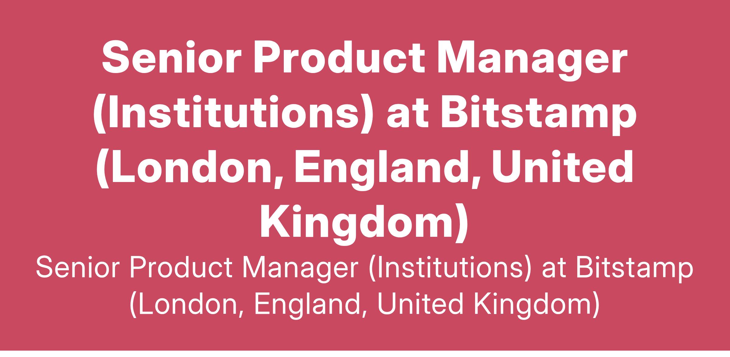 Senior Product Manager (Institutions) at Bitstamp (London, England, United Kingdom)
